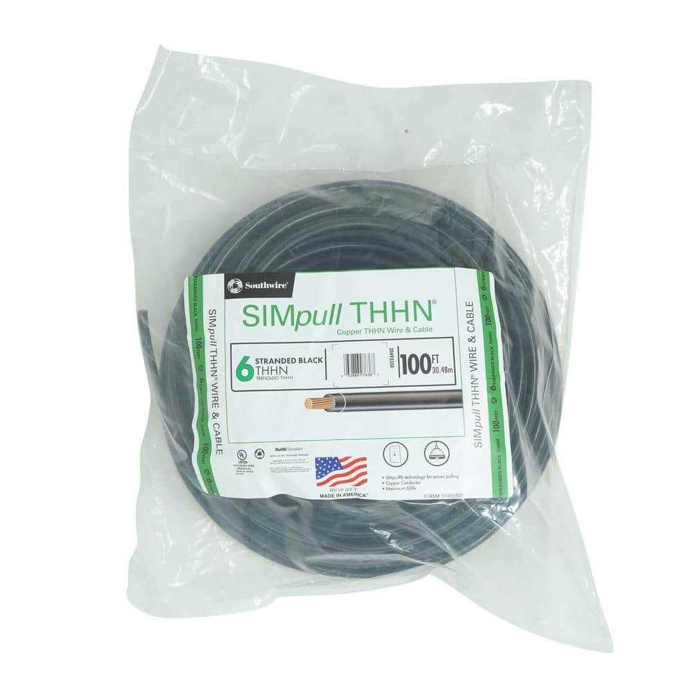 Southwire – 20493346 – Building Wire THHN 6 AWG Black 100 ft.