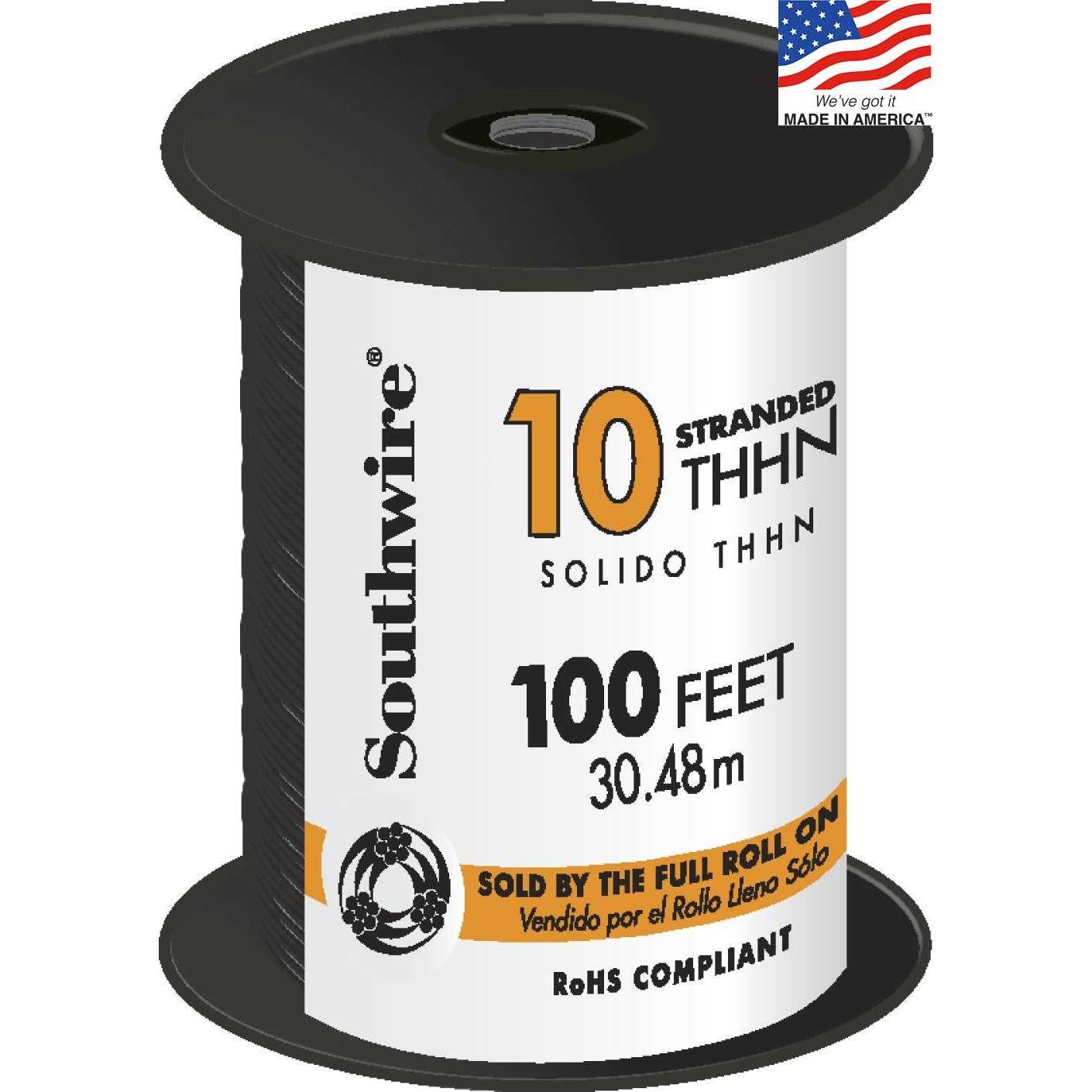 Southwire 22973237 Stranded THHN Wire, Black, 100′, 10 Gauge