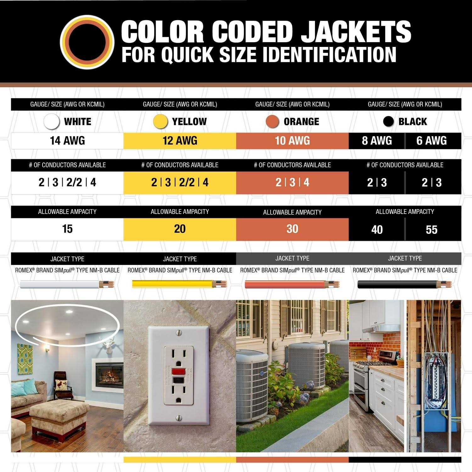 - Romex Type NM-B Copper Building Wire is commonly applied in residential building wiring as a branch circuit for switches and outlets