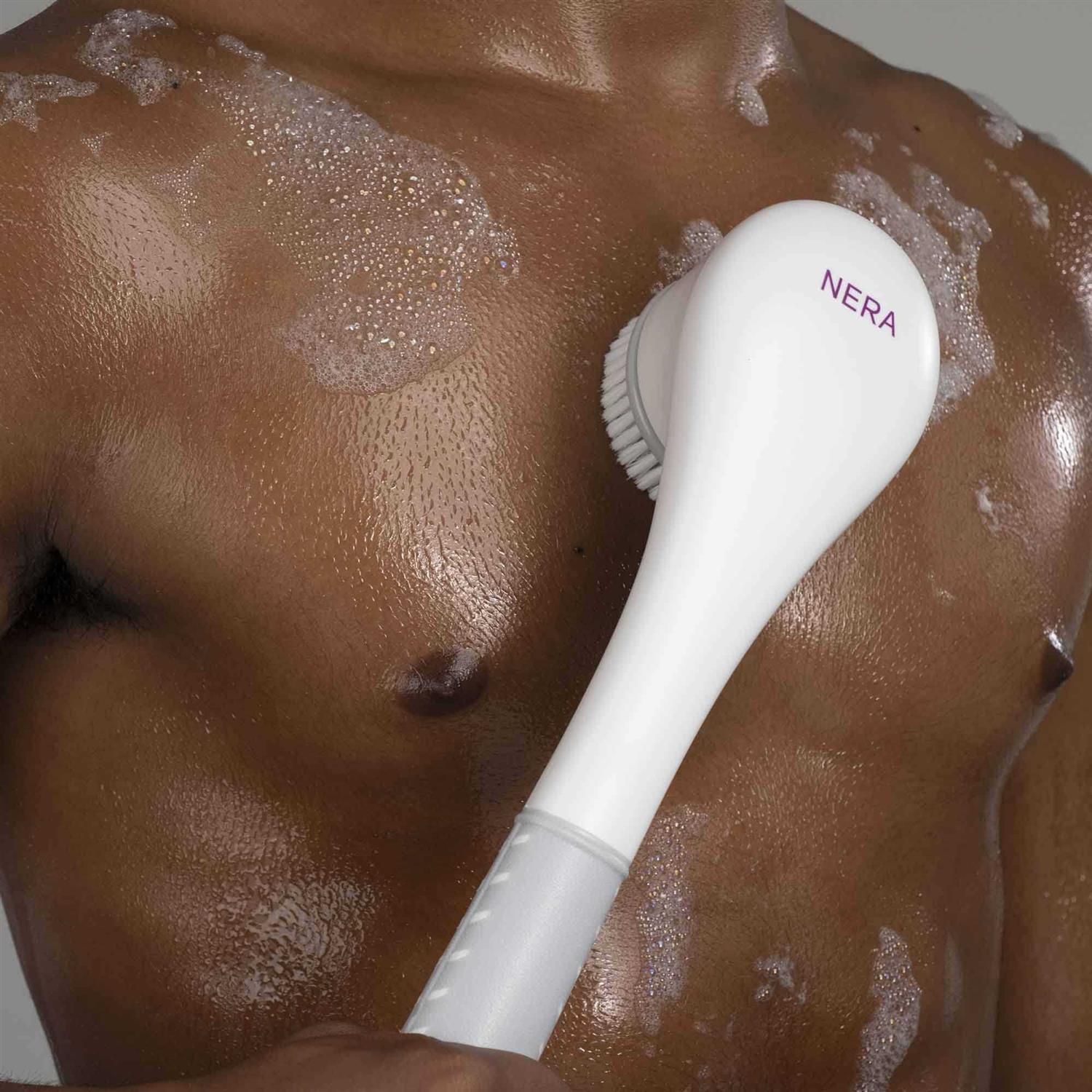 NERA turns a usual shower routine into a spa-like cleansing experience. 3 different treatment heads provide thorough exfoliation, sensational massaging and ultimate cleansing. NERA helps promote healthier, younger looking skin and instantly soothes tired achy muscles. This is a great device to reduce body acne, gently exfoliate dead skin cells and rejuvenate the skin from the neck to the bottom of the feet. NERA is also the first shower tool to come with patented antimicrobial protection built-in its body brush bristles and loofah. Additionally, NERA is USB rechargeable, cordless and the long handle of NERA makes easy to reach all areas of the body. No assembly required, the extra long handle is ready to use and does not need to be assembles or manually extended. Washing your back or feet has never been easier, discover head-to-toe radiance with NERA!