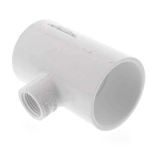A tee is a plumbing fitting that allows you to connect three sections of PVC tubing or Piping. Two of the three connections have a slip fit connection, which are the two outside connections measuring 1-1/2 inch nominal size. The outlet or side connection of this tee has a 1/2″ threaded female connection. The fitting is specifically used in order to connect three sections of schedule 40 PVC pipe. These fittings are great for water transportation applications such as irrigation and sprinkler systems. However they should never be used for gas or compressed air applications.