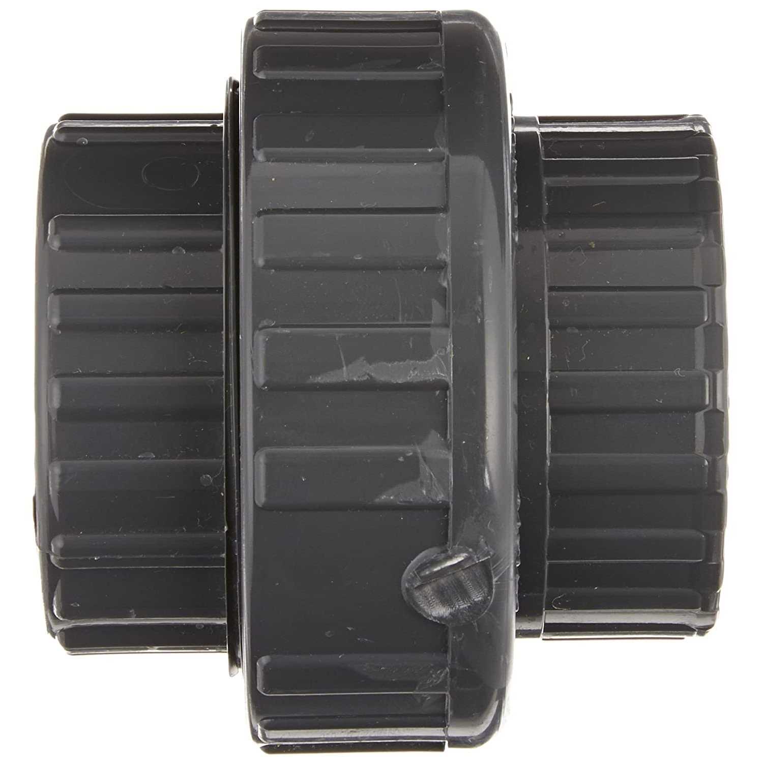 Union Fitting For Connecting And Disconnecting Two Pipes More Easily Than With Couplingssocket Openings On Both Ends For Connecting Two Male Pipespvc For Strength And Resistance To Chemicals And Corrosion, And A Viton Seal For Use With A Variety Of Chemicals And Fuelsmaximum Operating Temperature Of 140 Degrees Fmeets Astm D1784 And D2467 Standards For Quality Assurance, And Certified By Nsf International For Potable Water Service This Spears 857 Series Schedule 80 Pvc Union Fitting Has Socket Openings On Both Ends, And Is Suitable For Connecting Two Pipes. The Socket Ends Connect To Pipes With A Smooth Bore For Enhanced Flow. The Fitting Has Three Pieces And Includes A Threaded Connection That Can Be Screwed Or Unscrewed To Connect Or Disconnect Pipes More Easily Than With Couplings. It Is Made Of Gray Pvc (polyvinyl Chloride) For Chemical And Corrosion Resistance, High Strength, And Less Weight Than Fittings Made From Metal, And Has A Viton (fkm, Fluoroelastomer) Seal For Resistance To Oils, Fuels, Chemicals, Many Solvents, Weathering, And Extreme Temperatures. It Is Compatible With Schedule 80 (thick Wall) Pvc Pipes And Fittings, And Is Suitable For Chemical Processing, Industrial Plating, Chilled Water Distribution, Deionized Water Lines, And Chemical Drainage And Wastewater Treatment Systems. Pvc Can Be Connected To Other Materials Such As Steel, Copper, Or Cast Iron Using Transition Fittings. The Fitting Has A Maximum Operating Temperature Of 140 Degrees F, And A Maximum Operating Pressure Of 235 Pounds Per Square Inch (psi) At 73 Degrees F. It Meets Astm International D1784 And D2467 Standards For Quality Assurance, And Is Certified By National Sanitation Foundation International (nsf) For Potable Water Service. This Schedule 80 Pvc Union Fitting Is Suitable For Connecting Pipes For Conveying Drinking Water, Waste Water, Chemicals, And Other Liquids In A Range Of Industries.pipe Fittings Are Components Used For Connecting, Terminating, Controlling Flow, And Changing The Direction Of Piping In Many Different Industries. When Purchasing Pipe Fittings, Consider The Application, As This Will Affect Material Type, Shape, Size And Required Durability. Fittings Are Available Threaded Or Unthreaded, In Many Shapes, Styles, Sizes, And Schedules (pipe Wall Thickness).spears Manufacturing Produces Thermoplastic Fittings And Valves For Fluid, Drain, Waste, And Vent Systems. The Company, Founded In 1969 And Headquartered In Sylmar, Ca, Meets International Organization For Standardization (iso) Standard 9001.