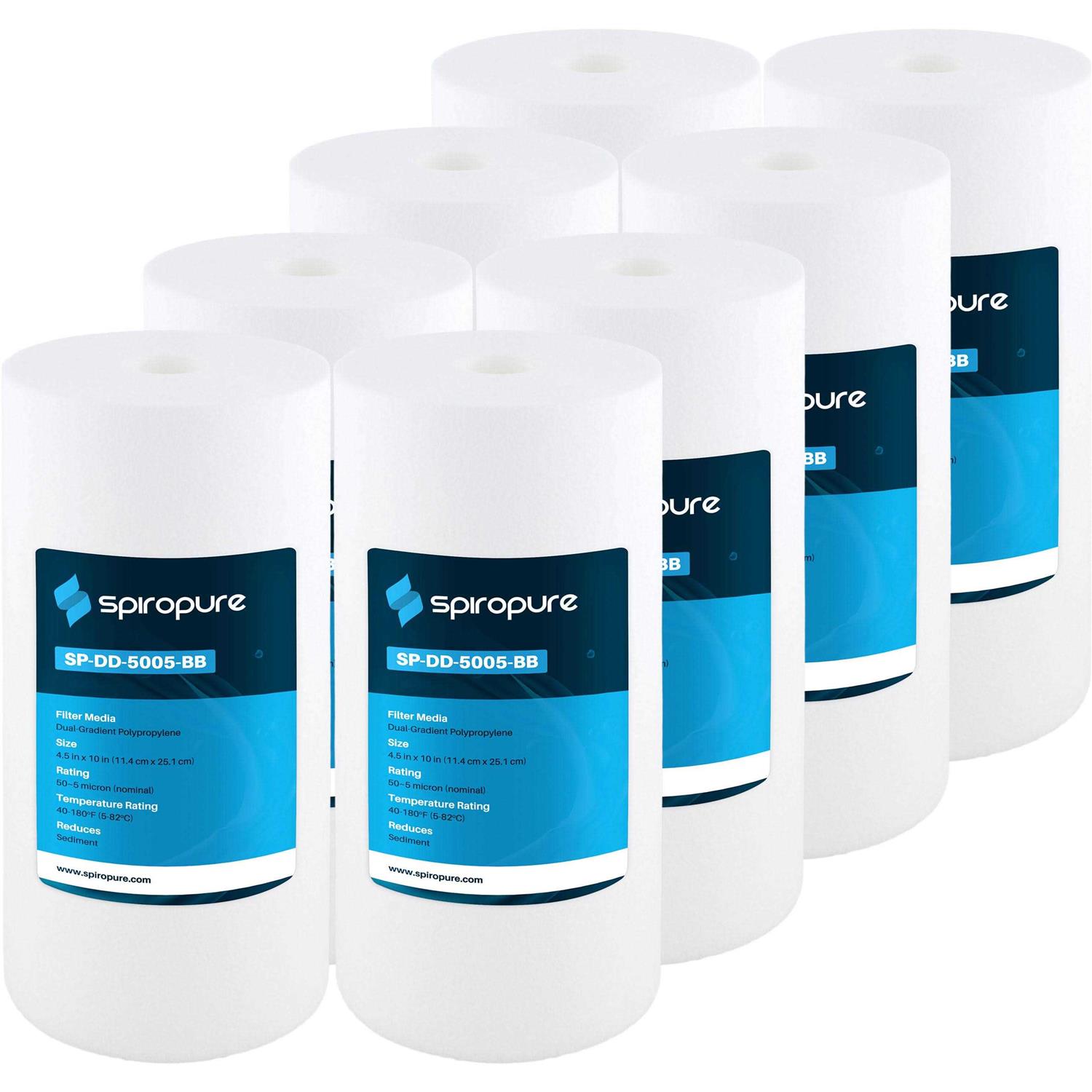 SpiroPure 10 x 4.5″ Dual Gradient Polypropylene Water Filter, 5 Micron (8 Pack)
