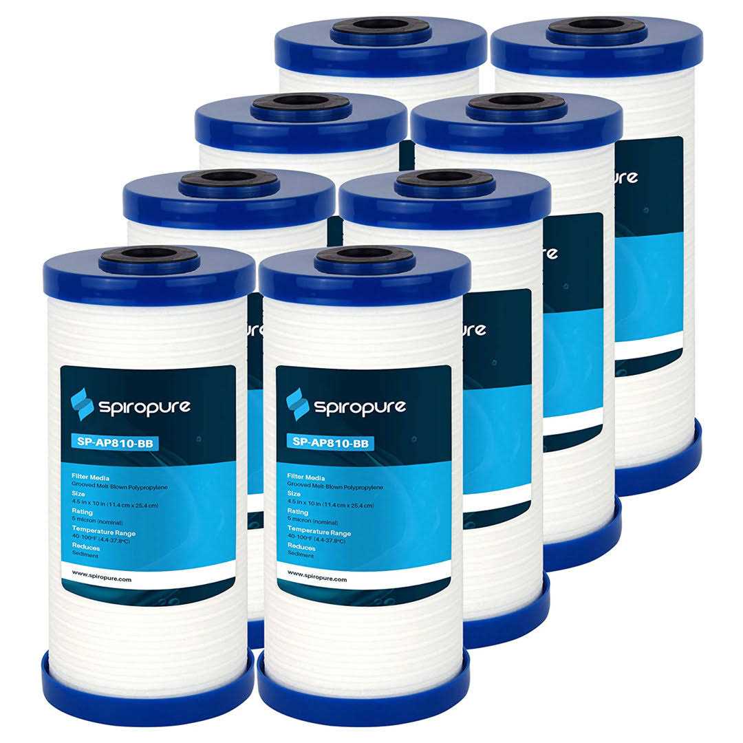 SpiroPure 10 x 4.5″ Grooved Sediment Water Filter Cartridge, 5 Micron (8 Pack)