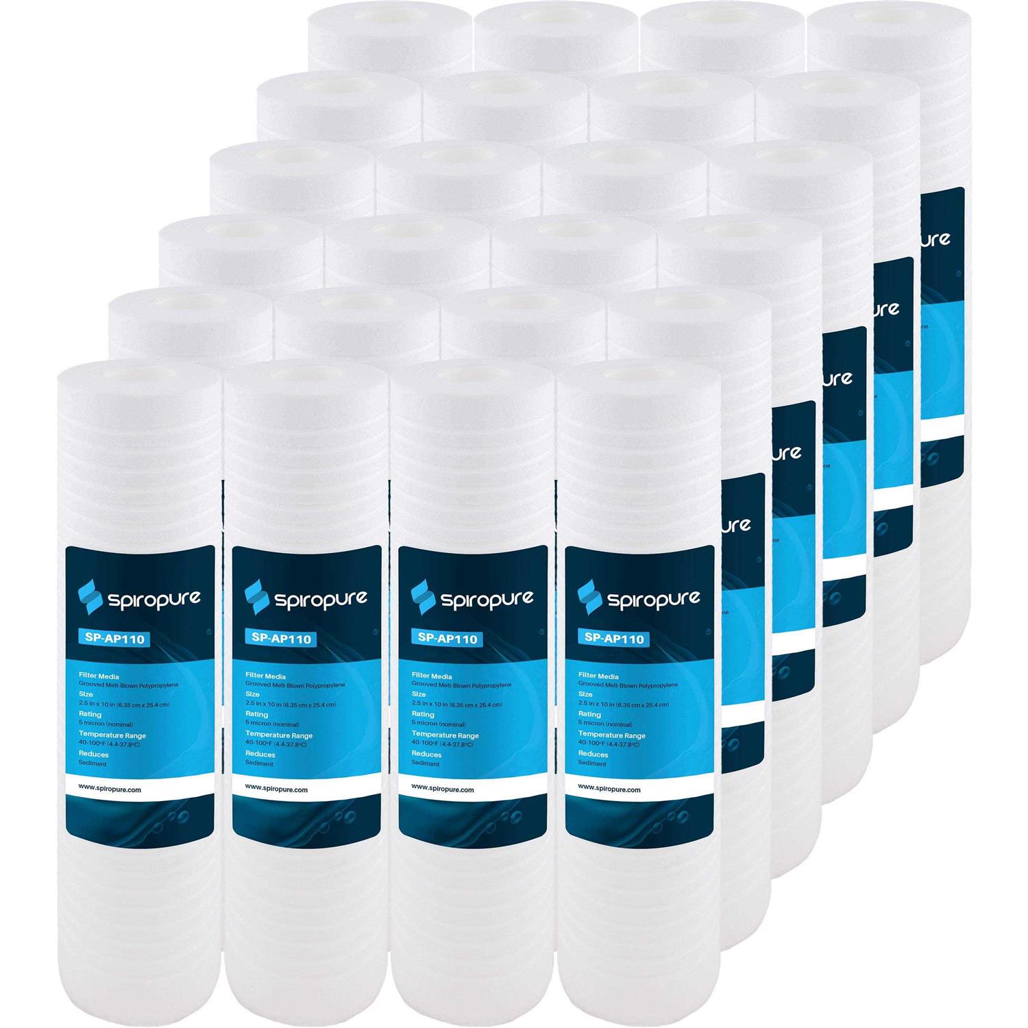 SpiroPure SP-AP110 10 x 2.5in Grooved Sediment Water Filter Replacement, 24 Pack