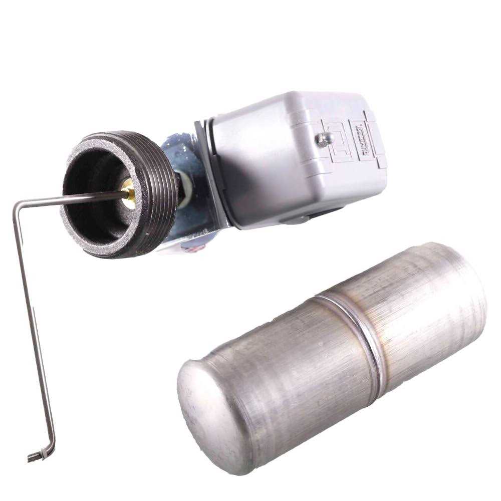- Float switch with screw-in bushing side-mounts to a closed-tank to activate a condensate or other pump