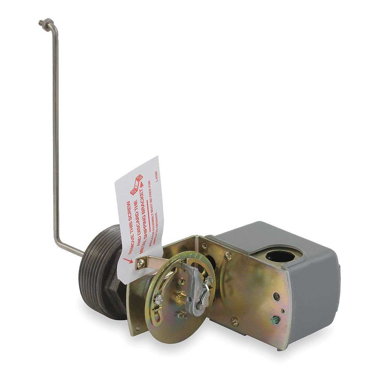 - Float switch with screw-in bushing side-mounts to a closed-tank to activate a condensate or other pump