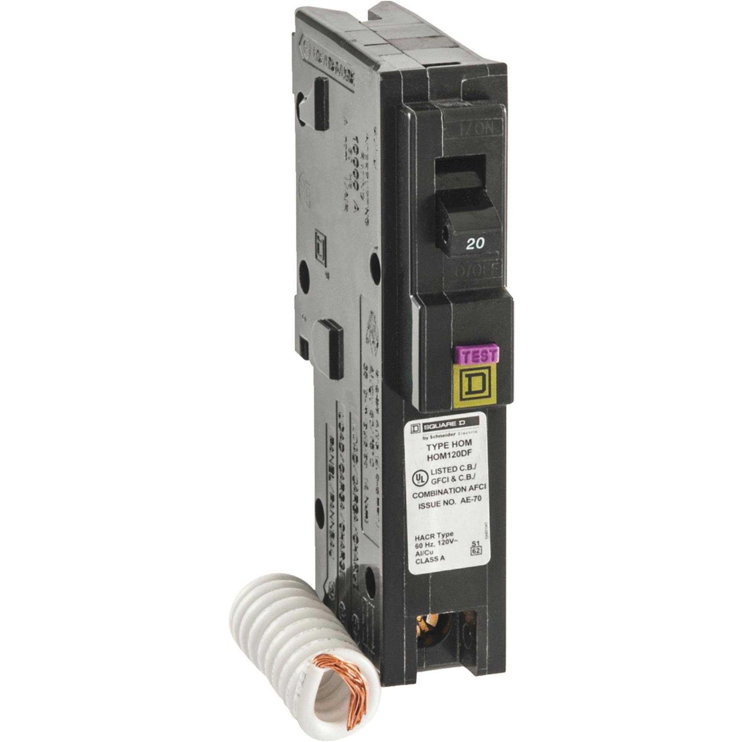 Square D Hom120dfc Homeline Single-Pole Dual Function Circuit Breaker, 20 Amp