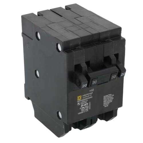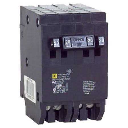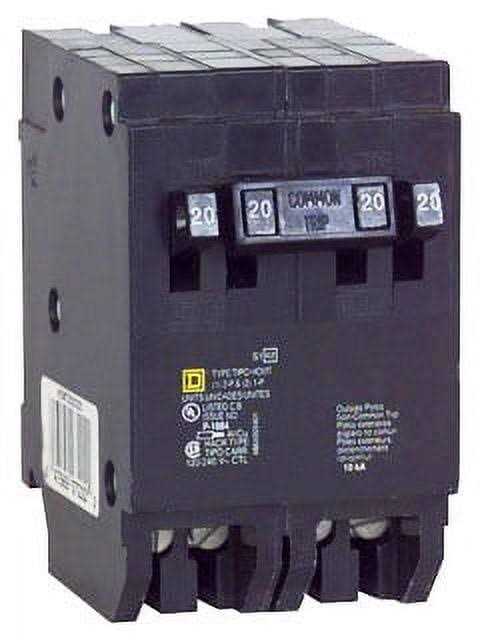 Schneider Electric/Square D homeline trade 2-pole quad tandem circuit breaker features thermal magnetic molded case for extra protection. Circuit breaker has current rating of 20 amps on outside pole and 30 amps on inside/common trip pole. It has voltage rating of 120/240 vac and interrupt rating of 10 kilo-amps. It accommodates copper/aluminum wire of range 14 – 8 awg. The 1-phase circuit breaker measures 2.000 inch x 2.980 inch x 3.130 inch and provides long-time instantaneous trip functions.