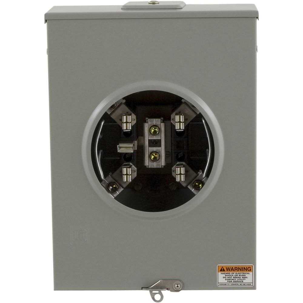 The square d 200 amp residential ringless meter socket with horn bypass surface mounts to provide for a single electric meter. It accommodates multiple wiring configurations for a size hub provision in the top end wall and a 2-1/2 in. Maximum knockout in the bottom end-wall. The meter main uses an aluminum bus, is single phase, 3 wires and features a nema 3R rated enclosure for outdoor use. This unit is ansi certified and ul listed for use as service entrance equipment with a maximum load of 600 vac maximum. This 5-jaw meter socket is compatible with #350 mcm connectors maximum conductor line and load and neutral.