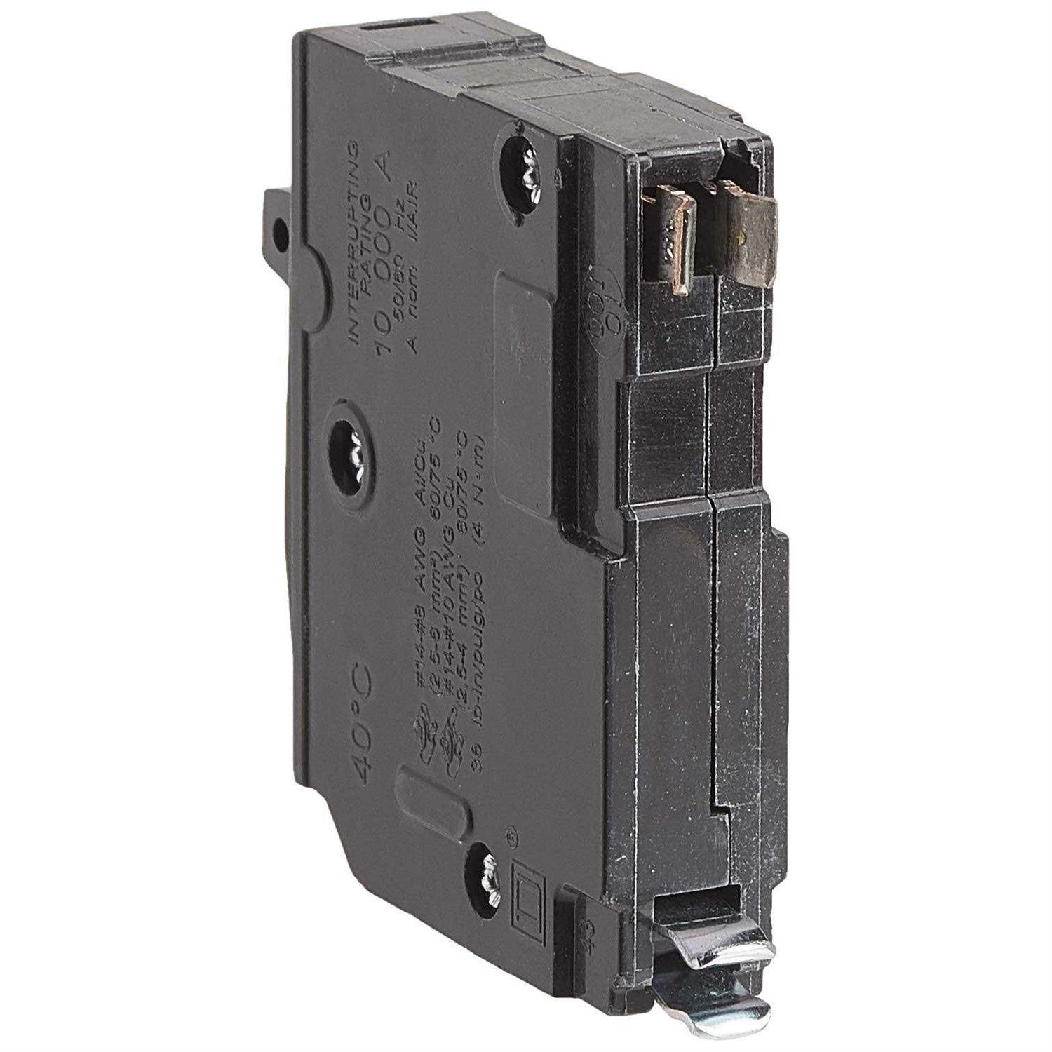 QO single pole circuit breaker for QO load centers. Intended for overload and short-circuit protection of electrical systems. ANSI (American National Standards Institute) certified and UL (Underwriter FTs Laboratories) listed. Rated for 120/240 VAC and 10,000 AIR. Features the exclusive Visi-Trip indicator. When the circuit breaker trips, the handle snaps to a midpoint and a highly visible red indicator easily identifies the tripped breaker. Plug-on type, 1 space required. 120/240V AC only.