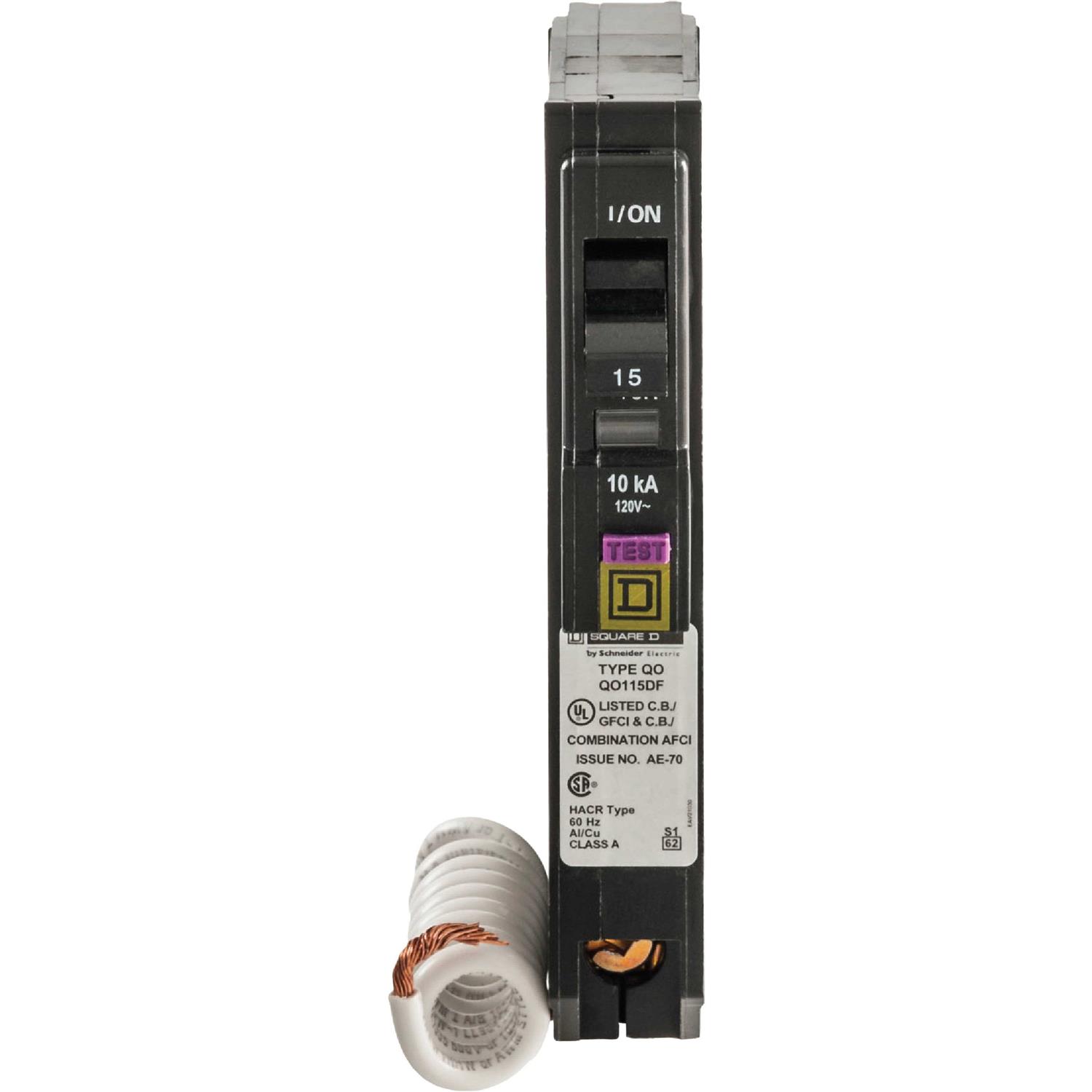 Square D QO115DFC QO Single Pole Dual Function Circuit Breaker, 15 Amp