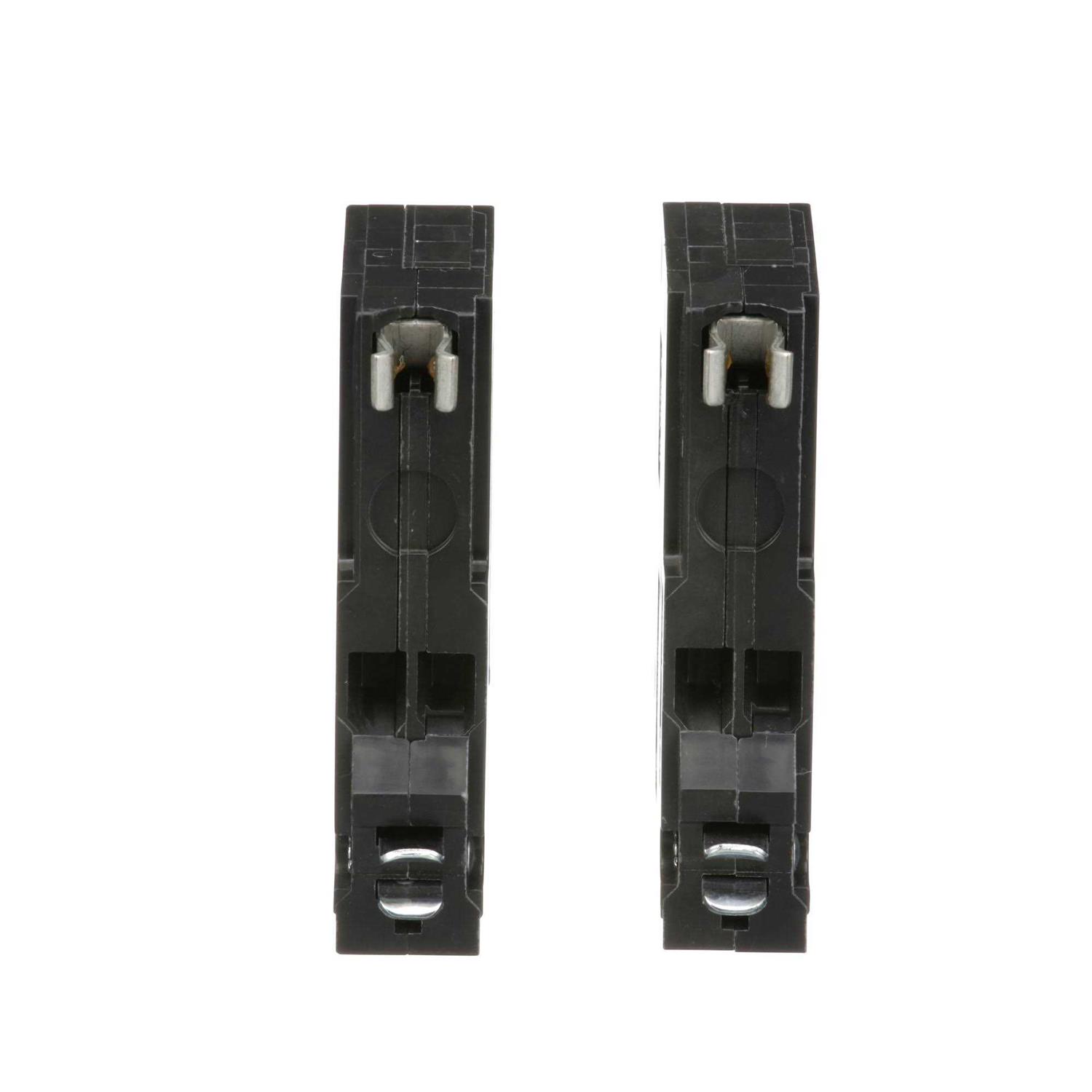 It has interrupt rating of 10 kilo-Amps at 120/240 VAC and 5 kilo-Amps at 48 VDC. It accommodates copper or aluminum wire size of 14 – 8 AWG and copper wire size of 14 – 10 AWG. The 1-Phase circuit breaker measures 0.750 Inch x 2.910 Inch x 3 Inch and provides long-time instantaneous trip functions to perform efficiently. It is ideal for QO load centers, NQ/NQOD panel boards/interiors and speed-D switchboard distribution panels. It uses plug-on mounting to hold firmly. Circuit breaker meets UL/CSA standards.