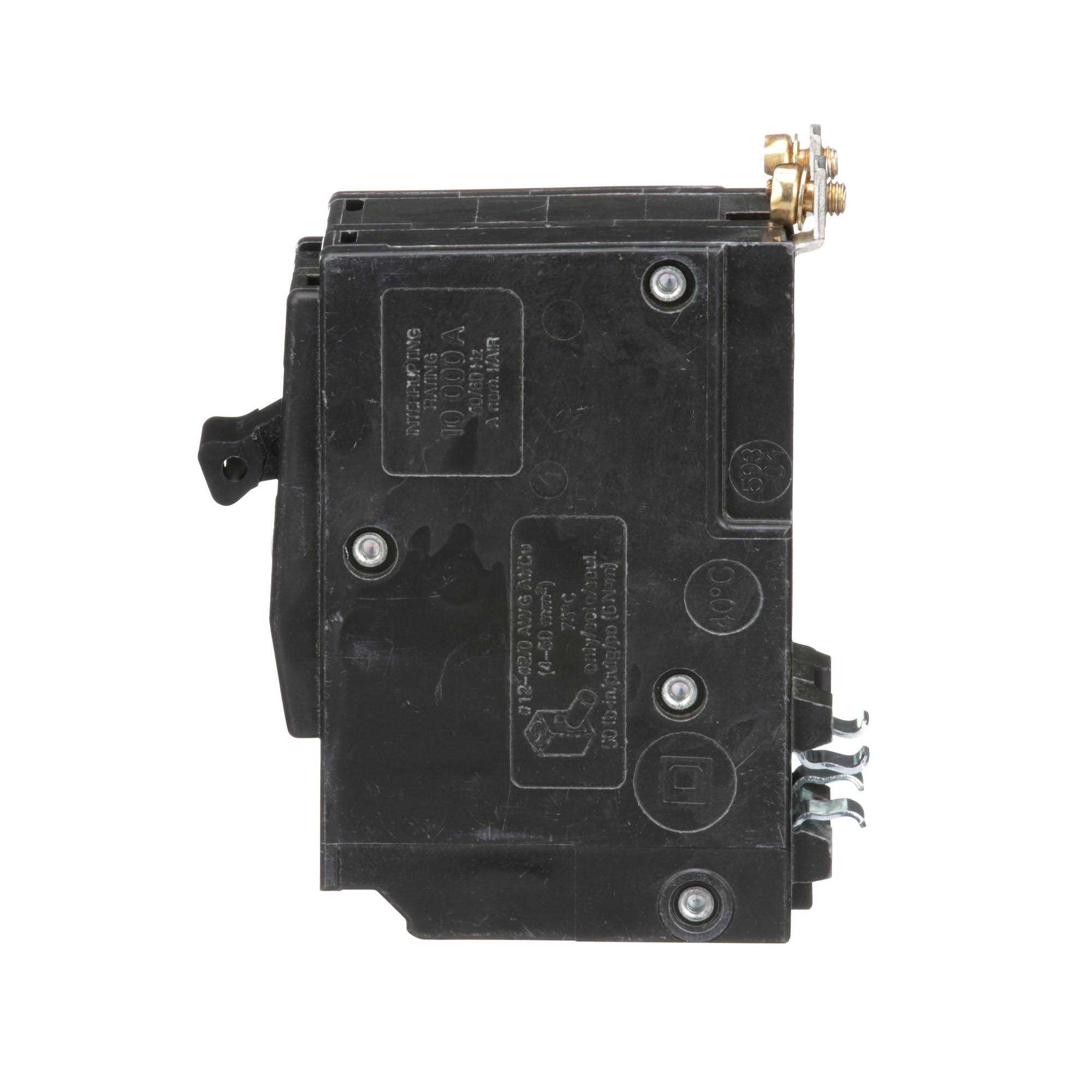 It has an interrupt current rating of 10-Kilo-Amps at 120/240-Volts AC 5-Kilo-Amps at 48-Volts DC and 10-Kilo-Amps at 120-Volts AC to provide fast short circuit interruption. The thermal magnetic trip offers overcurrent short circuit protection. This bolt-on mountable miniature circuit breaker has 2-space 100-Amp/QO frame and box lug terminal. It accommodates 4-2/0-AWG aluminum or copper conductors. Miniature circuit breaker measuring 1.5-Inch x 2.91-Inch x 3.5-Inch is suitable for use with Square D NQOD panelboards. The miniature circuit breaker meets UL CSA and HACR standards.