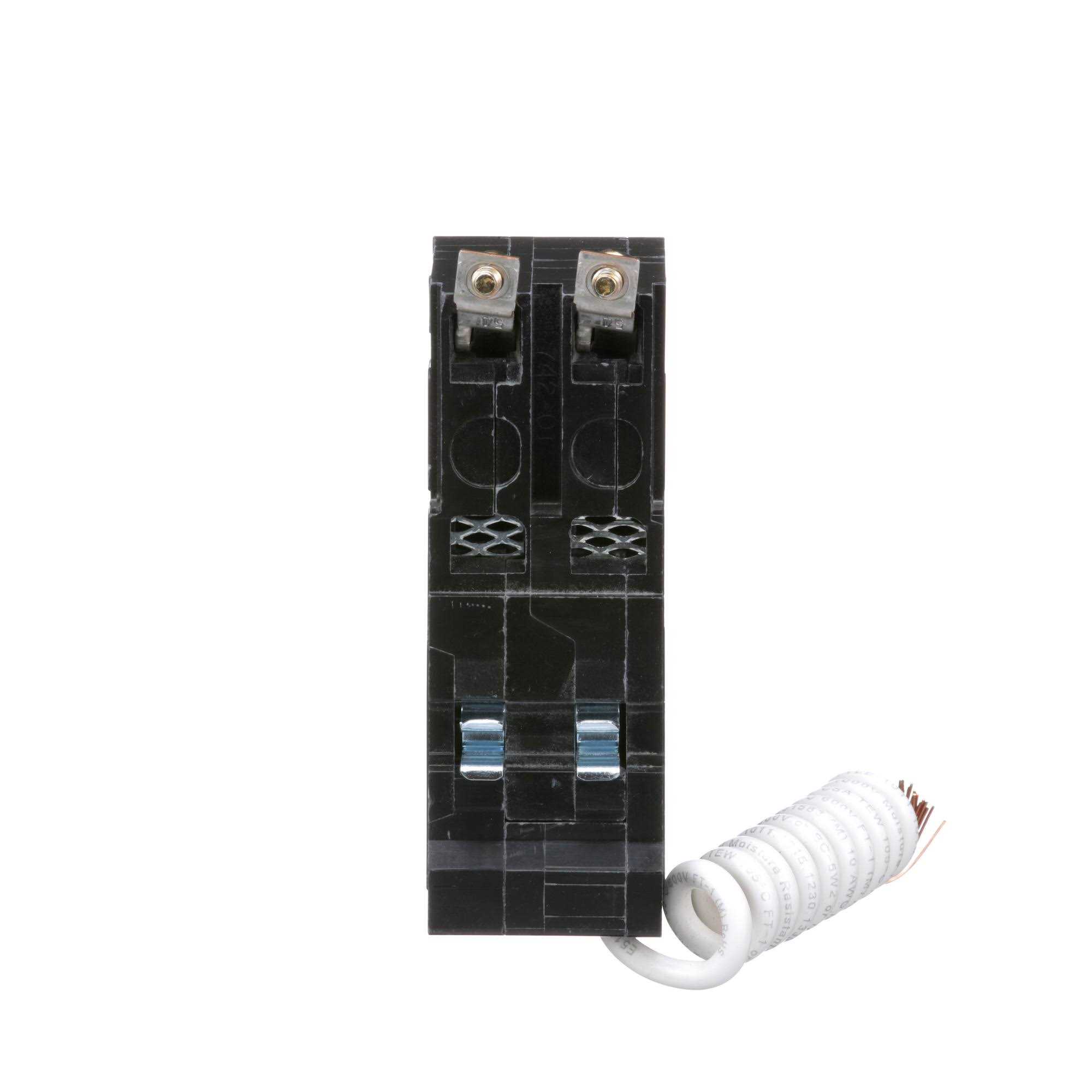 Schneider Electric/Square D Ground fault miniature circuit breaker has an integrated pressure plate to offer protection against damage to flexible lines. It offers ground fault protection for class A circuits that have current rating of 6 milli-Amps. Circuit breaker has two-spaces and mounting bolts to hold the breaker in place. It is ideally designed to offer superior overload and short circuit protection. It is an ideal choice for NQOD panel-boards. It measures 1.500 Inch x 2.910 Inch x 4.120 Inch. Circuit breaker is UL listed/CSA certified and meets Fed. Specs W-C-375B/GEN standards.
