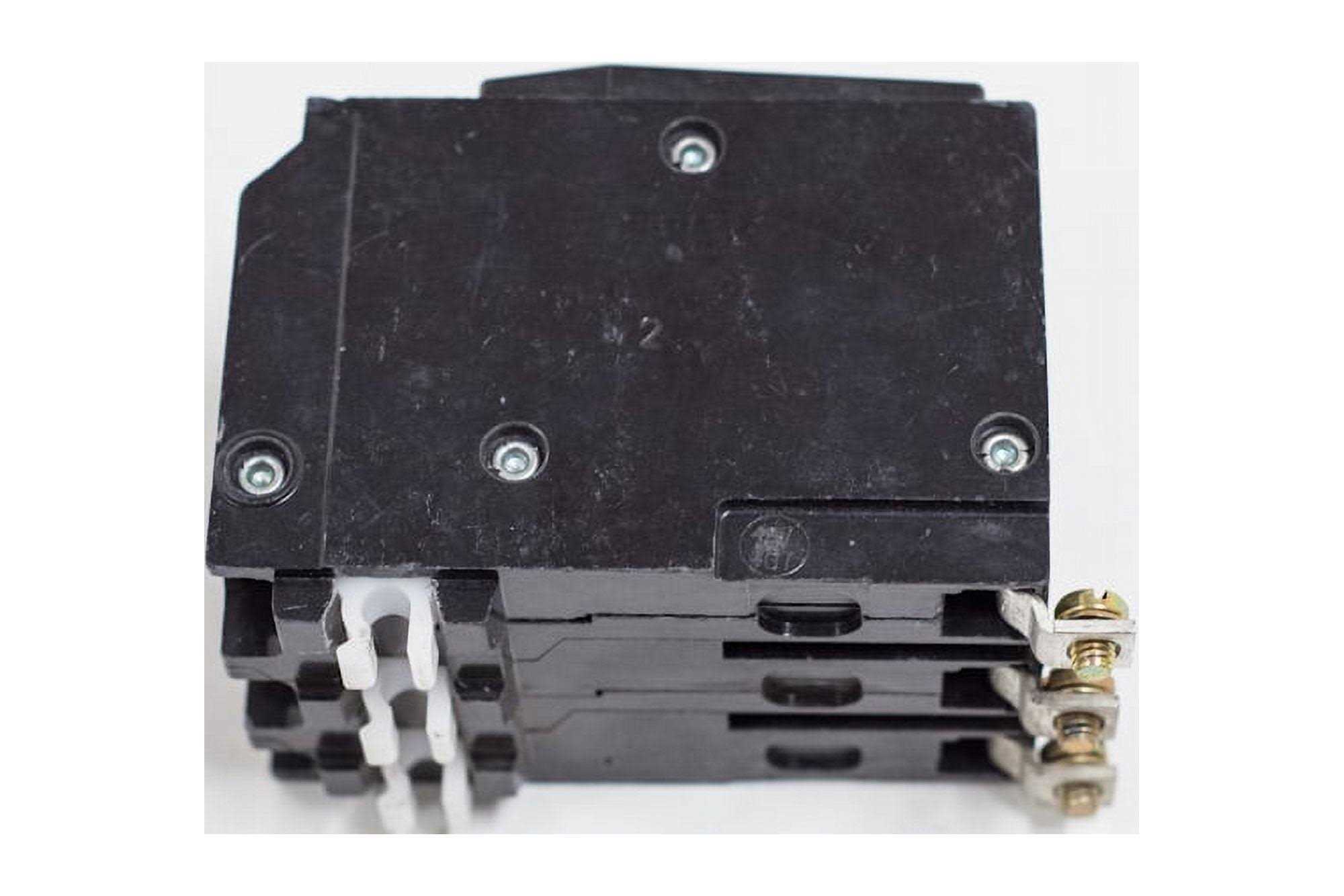 Schneider Electric/Square D Miniature circuit breaker with visi-trip indicator has an integrated pressure plate to offer protection against damage to flexible lines. Circuit breaker has interrupting current rating of 5 kilo-Amps at 48 VDC. Standard size circuit breaker accommodates 14 – 8 AWG copper and aluminum wires. Circuit breaker measures 2.250 Inch x 2.910 Inch x 3 Inch. It is ideally designed to offer superior overload and short circuit protection. Circuit breaker has three-spaces and mounting bolts to hold the breaker in place. It is an ideal choice for NQO/NQOD panel-boards. Circuit breaker is suitable for HACR rated applications. Miniature circuit breaker is UL listed and CSA certified.