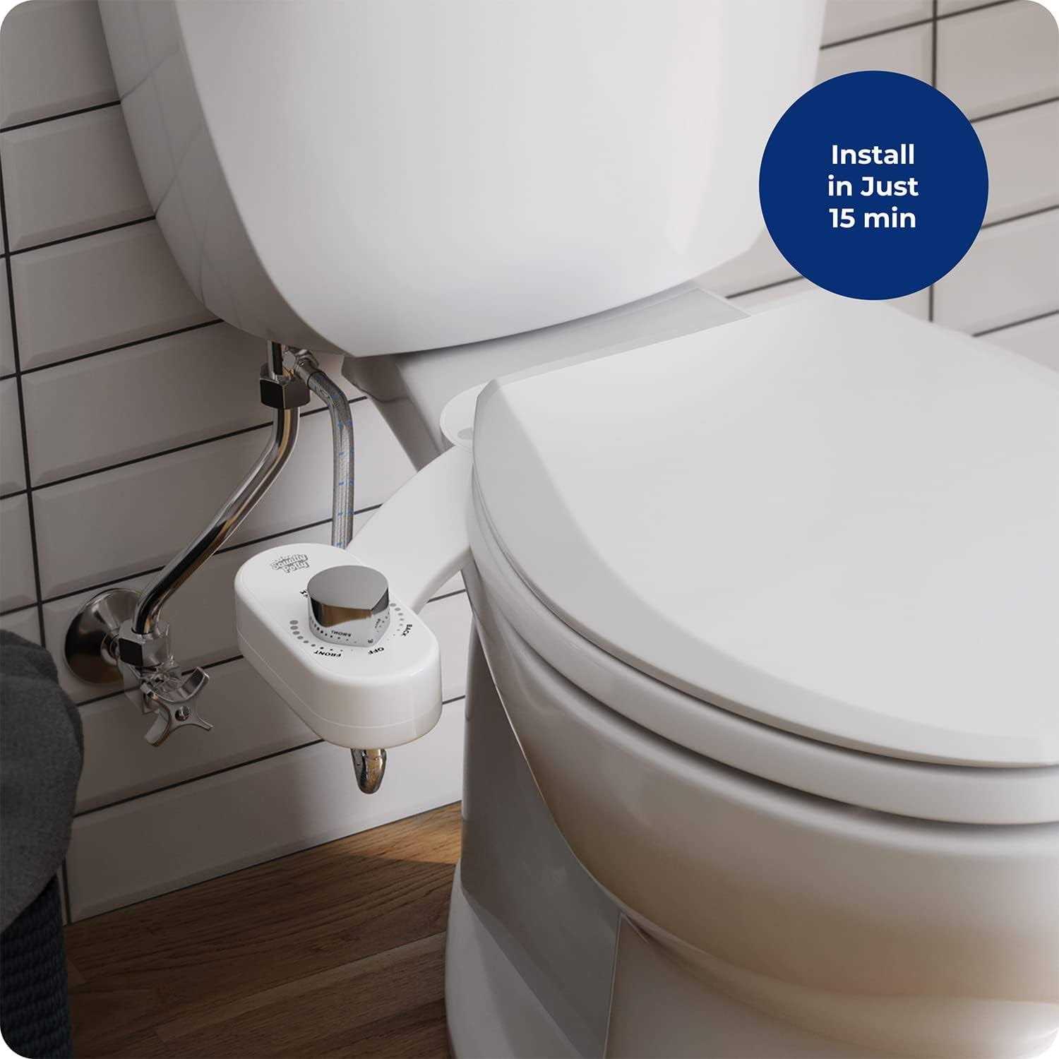 Simple to Use – This bidet has your back(side)! Reduce toilet paper by using fresh water to clean yourself. Wash your back or front by twisting the knob to use your preferred water pressure control level. Provides a clean, refreshing experience. Will It Fit? – Designed for elongated or round two-piece toilets. Squatty Potty refresh-it fits between the toilet bowl and the seat. Easy DIY Install – Quickly install this dual stream bidet toilet seat attachment in 10-15 minutes with a flat screwdriver and a wrench. Includes stainless steel fittings and hose. Adjustable Water Pressure – You control the nozzle spray to increase or decrease water flow. This non-electric bidet relies upon the water supply to propel the water. When the bidet is turned on, the nozzle will extend to ensure sanitary operation. Bidet Benefits – Feel cleaner after you poop. Great for postpartum recovery, hemorrhoids, and individuals with disabilities. Bidets are more hygienic than TP, easier to use than wiping, and gentler on your skin.