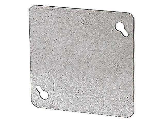 Cover for built-in mounting in the wall/ceiling using 4 in. This box cover offers 4 tapped screw holes for quick installation. Cover is also UL listed. Flat blank box cover For use with 4 in. square box Durable galvanized steel construction Use to cover a 4 in. square housing outlet box Pre-galvanized steel construction UL and CSA safety listings Quickly installs with 4 tapped screw hole Flat design Steel City Square Steel Box Flat Cover offers a slotted screw hole and a tapped screw hole for quick installation. UL and CSA certified product.