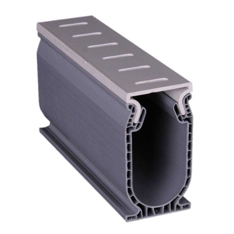 This is a gray Frontier Deck Drain in one 5 foot length section with a 1.7 width and removable top. The Stegmeier Frontier Deck Drain System features a double wall base and snap in (removable) top. The Frontier drain is easy to clean and the tops are replaceable. When installing this drain, the tops are staggered past the joints making the joints very rigid. Because the tops are removable, this drain is easy to clean and the tops can be replaced if ever damaged. Frontier Deck Drain is used in many residential and commercial swimming pools, patios and other pedestrian traffic areas. Note: This drain is not designed to be used as a full expansion. Stegmeier LLC requires that a 3/8 inch rebar be placed every 36 inches, midway in the drain, to prevent damage due to concrete deck movement.