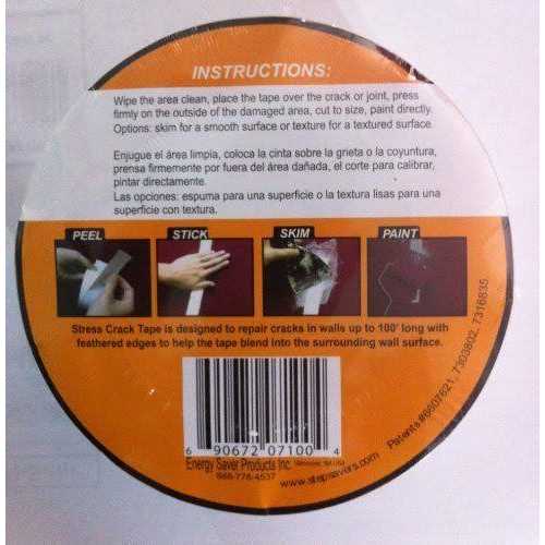 Self adhesive lower surface Paint ready smooth upper surface Strong flexible, patented material is less than 4 mils thick. Which is less than a tenth of a millimeter Feathered uneven edges blend into repaired surfaces No skills required, simply peel, stick and paint Stress Crack Tape item 7100 is a 1.25″ x 100′ smooth roll designed to repair cracks, small holes, as well as both inside and outside corner damage. It is simple to use and requires no carpentry experience. Simply Peel, Stick, and Paint. Will work on drywall or plaster, gypsum or any other wall surface.