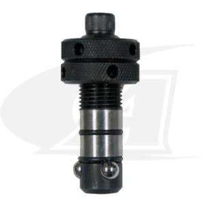 Insert the Ball Lock Bolt over the fixturing element and turn the knurled head with your hand for initial positioning. The Ball Lock Bolt consists of three locking steel balls in the bolt shank that move outward to lock against the bottom chamfer of the table plate, pulling the fixture components securely downward and tightening them in place. Once all the Bolts are positioned, tighten the socket head cap screw top of the Bolts with a hex wrench. Ball Lock Bolts release quickly from the Bolt top with a turn of your hex wrench.