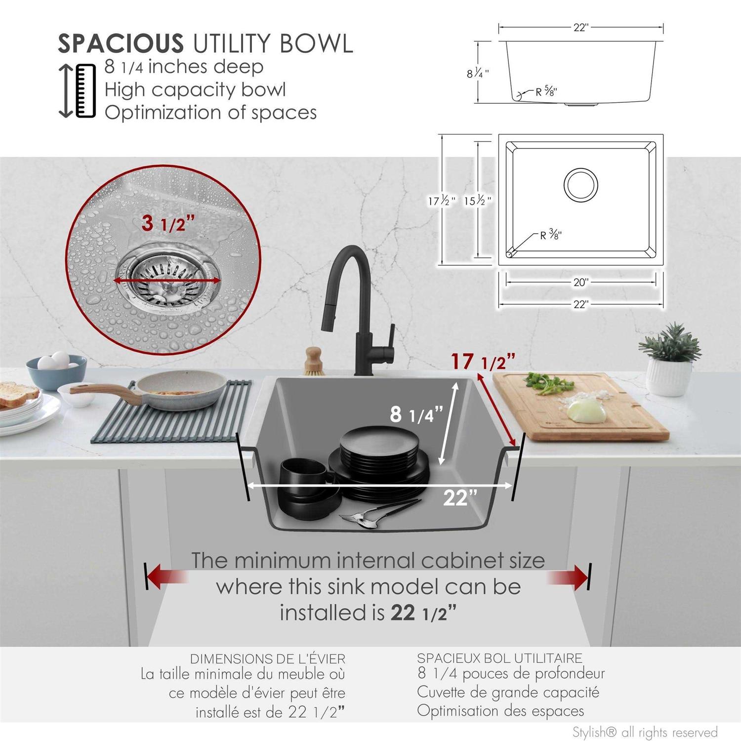 Be the first to review “Stylish S-822 22 inch Single Bowl Dual-Mount Composite Granite Kitchen Sink with Strainer”