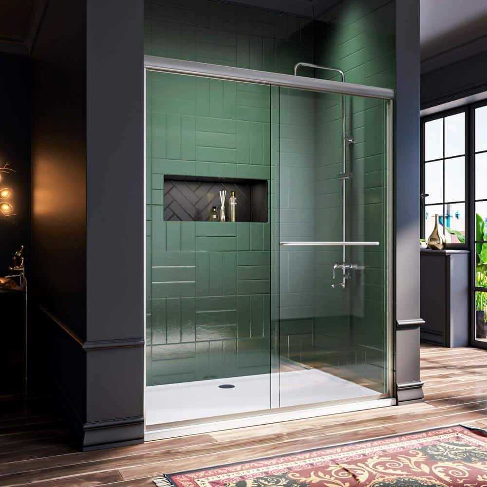 Stepping in and out of the shower can be a messy process if you don’t have the right equipment. This stylish sliding shower door features a contemporary design, providing a clean and enjoyable bathing experience free of needless hassle. The 1/4-inch thick tempered glass offers thorough shatterproof protection, so you can shower comfortably and safely at all times. The double sliding bypass design allows entry and installation to the shower on either the left or right side, for use that matches your preferences. An aluminum door handle equipped with a long bar is mounted proud enough to act as a towel rail or as leverage when opening/exiting. This system includes a long towel bar, 2 sliding glass panels, 4 waterproof seal strips, and all other necessary installation tools. High-quality PVC material seal strips prevent water from leaking to keep your bathroom looking tidy and clean. The shower door features an adjustable width from 52.5 to 54 inches wide and measures 72 inches high.