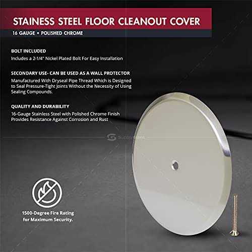 Access Doors by Supply Giant. Details:Supply Giant cleanout cover plate is constructed out of high-quality stainless steel. It is suitable for concealing an Cleanout hole where a cleanout plug is located while still allowing easy access to the cleanout plug when necessary. It can also be used as a wall protector to protect against doorknobs from damaging your walls. Choice of 2 size bolts to fit a variety of needs. Its flat design is easy to install and features a clean, simple look. Rust and corrosion resistant. California Proposition 65 Warning: This product is known to the state of California to cause cancer, or other reproductive harm.p65warnings.ca.gov. California Proposition 65 Warning: This product is known to the state of California to cause cancer, or other reproductive harm.p65warnings.ca.gov.
