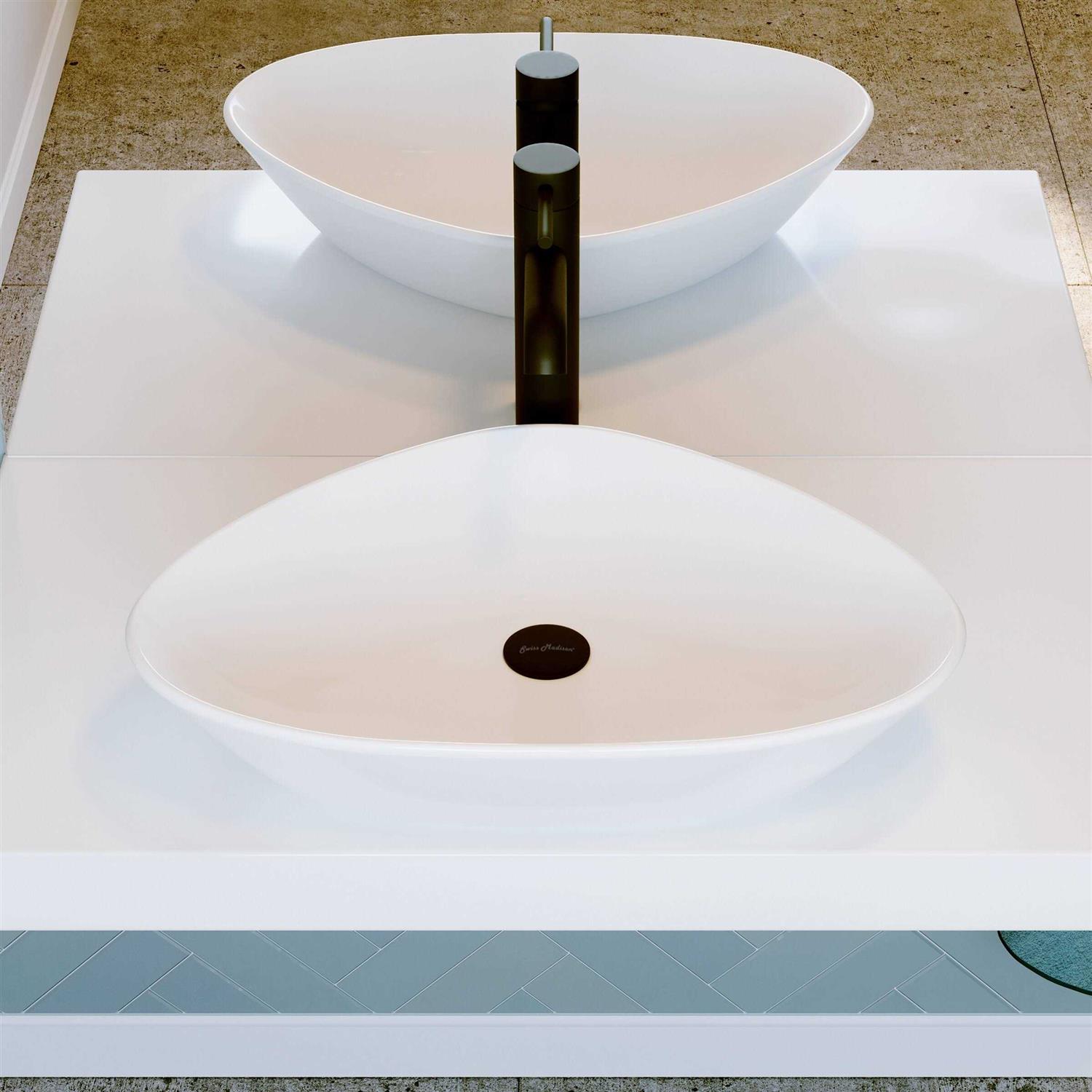 The Bastille Vessel sink is a sleek and modern addition to any bathroom setting. This extremely durable, non-porous, and scratch resistant sink coordinates perfectly with standard faucets, making it a hassle free and easy above-counter installation. The seamless design is made from one piece, which shows no signs of seams or lines. Additionally, this vessel sink is compatible with all Swiss Madison non-overflow pop-up drains.