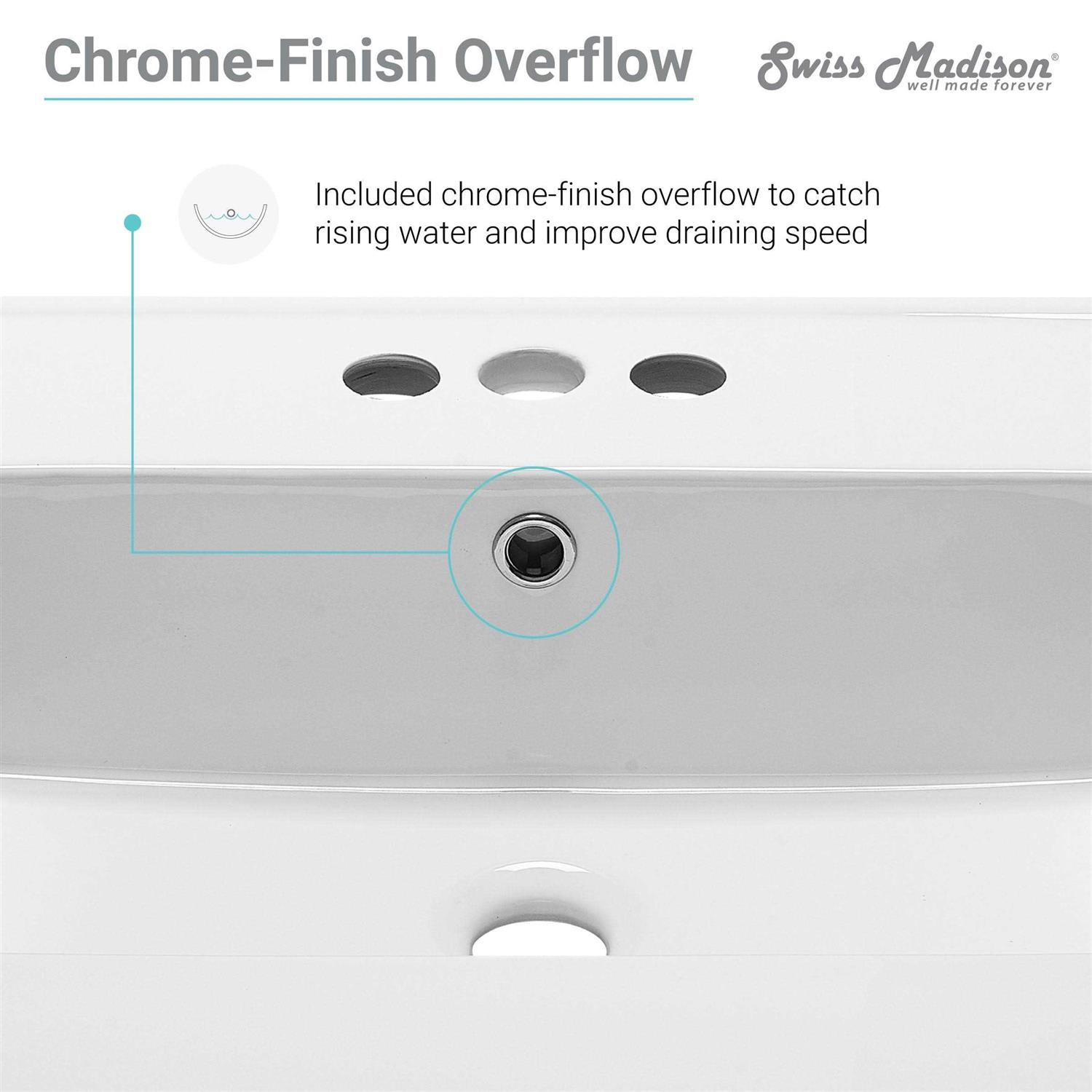 The Swiss Madison Ceramic Vanity Top Sink is ideal for larger faucet types. It’s integrated vanity top and sink offers easy installation and a practical style. Rounded edges and high gloss shine make for an excellent addition to any bathroom.