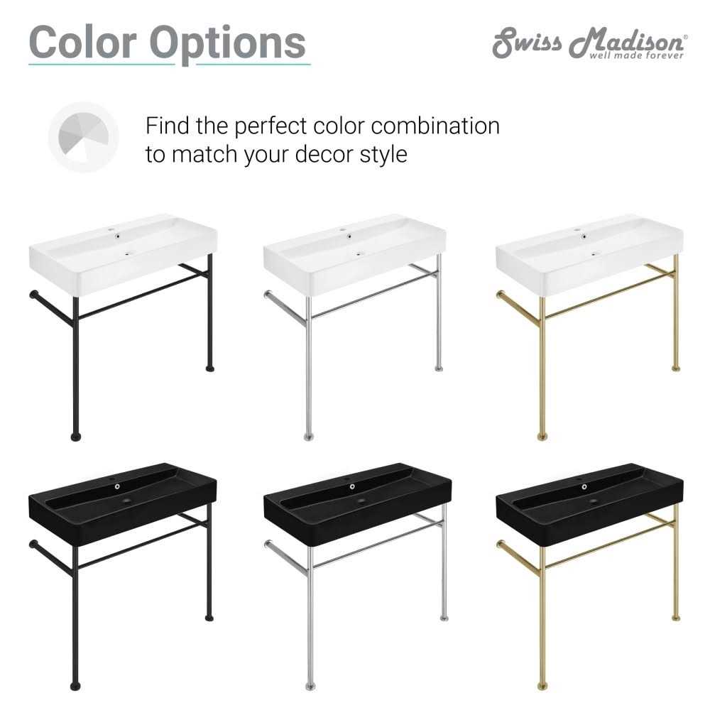 The Claire console sink was designed to use minimal floor space and to make bathrooms appear more spacious. Its elongated, rectangular basin features an overflow and is ready to be paired with your favorite faucet and drain. This sink’s frame comes in a variety of finishes and includes a front bar that is perfect for hanging towels. Claire’s minimalist design will complement any bathroom.