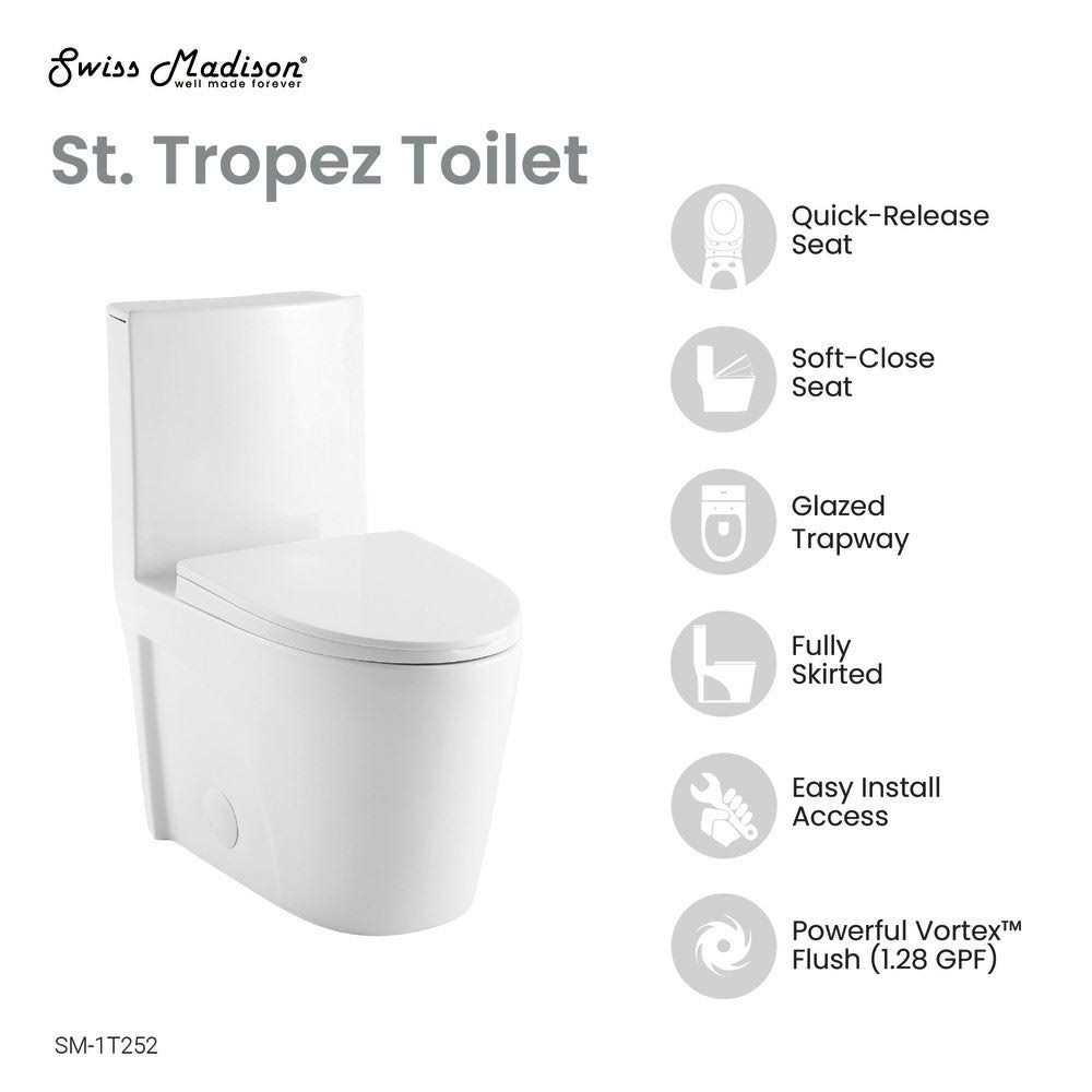 Swiss Madison SM-1T252 St. Tropez 1.28 GPF Elongated One-Piece Toilet (Seat Included) Lever Location: Right