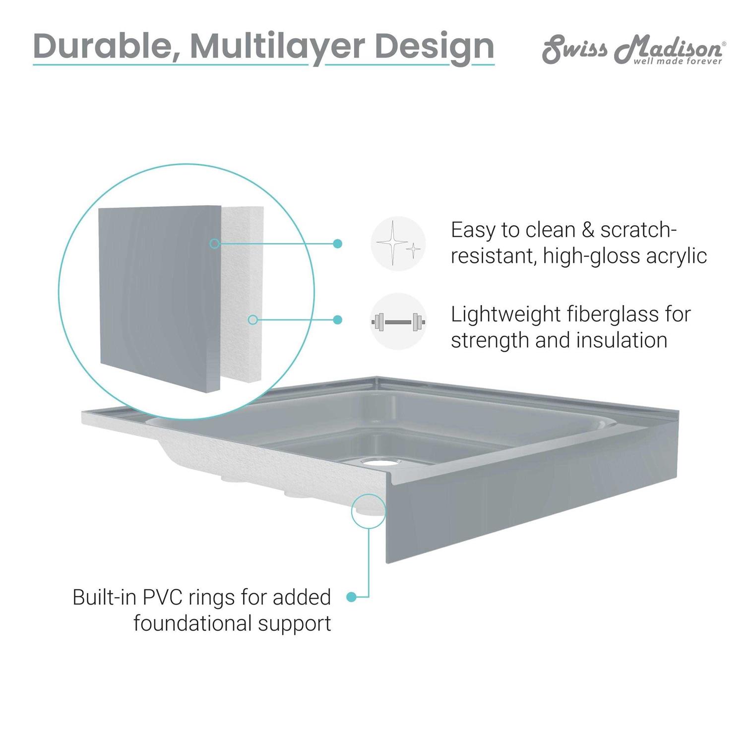 Swiss Madison Voltaire 48 x 32 Single-Threshold, Center Drain, Shower Base in Grey