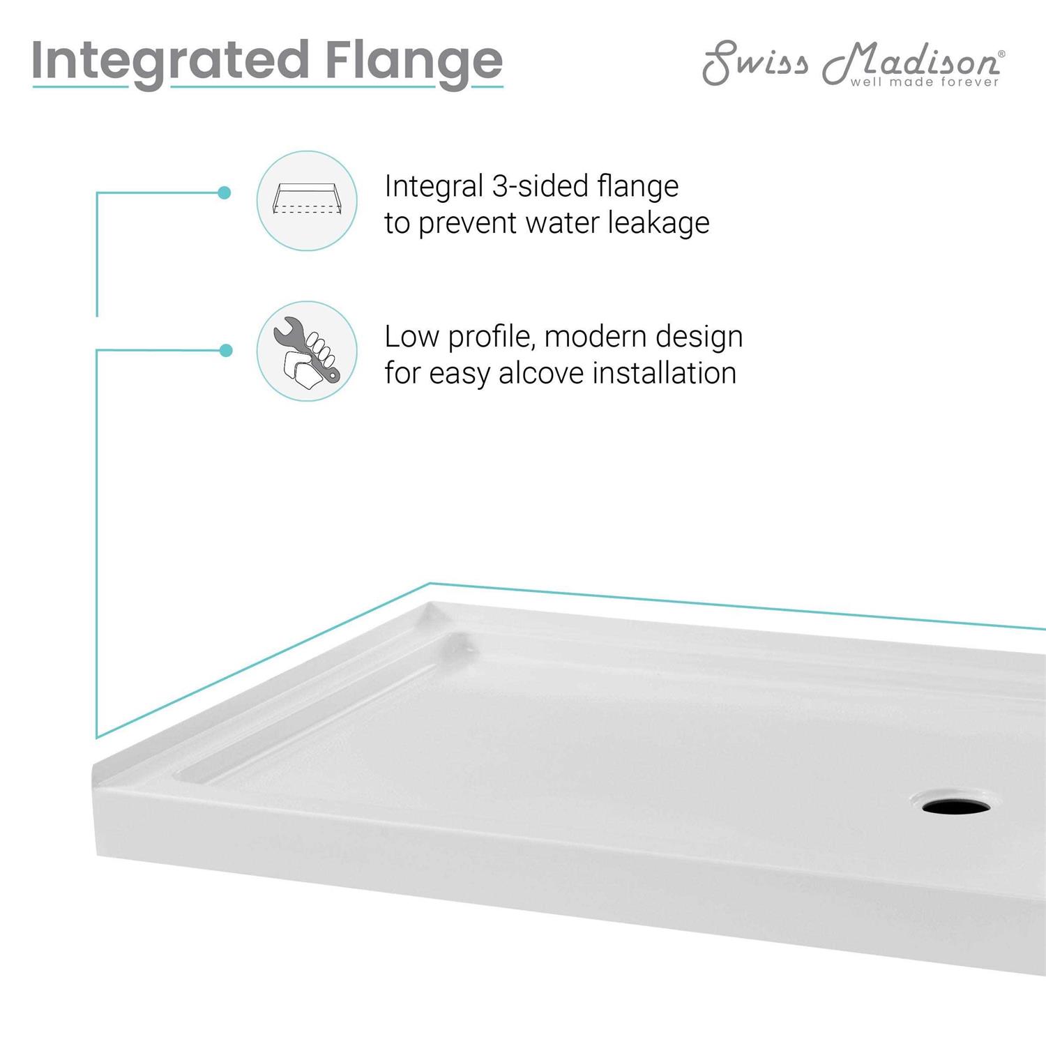 Swiss Madison Voltaire 48 inch x 36 inch Acrylic White, Single-Threshold, Right Drain, Shower Base