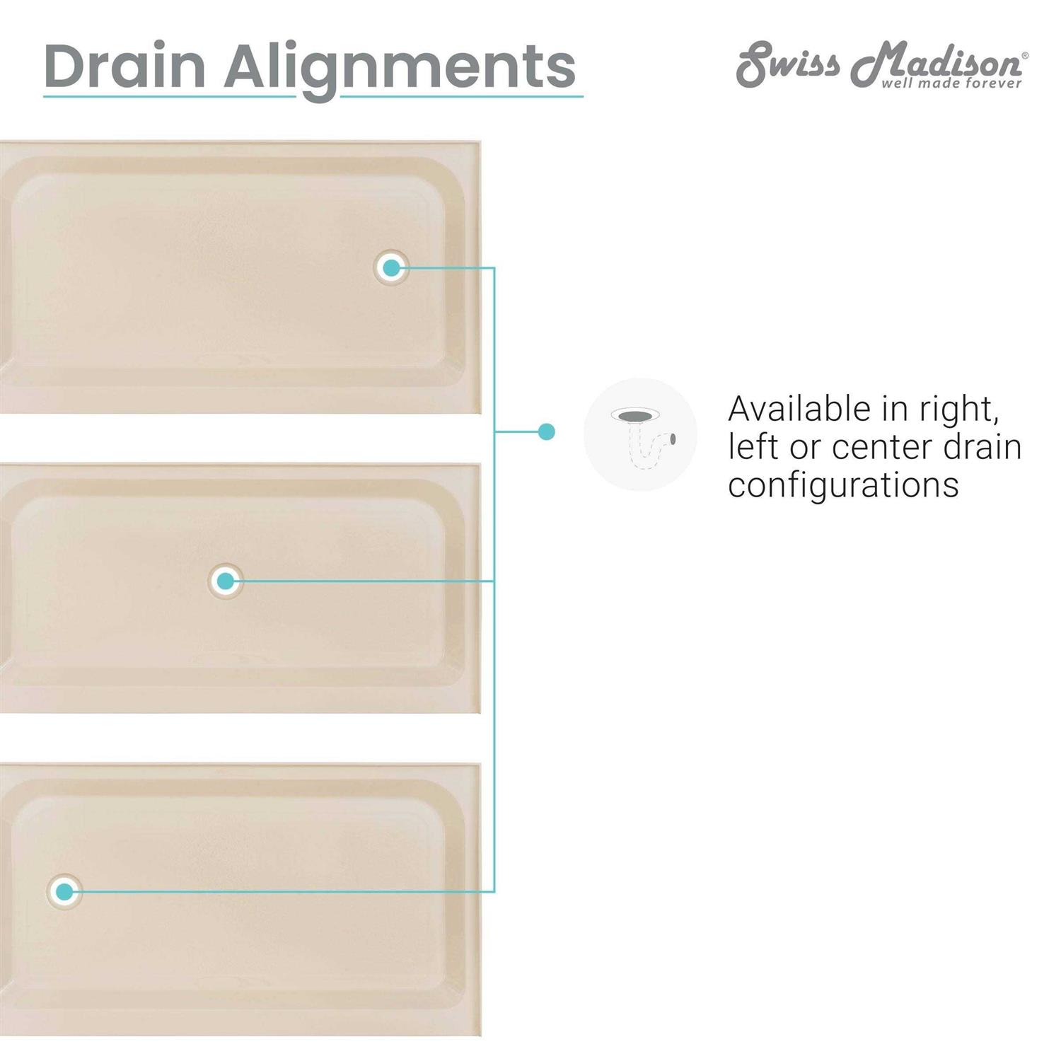 Swiss Madison SM-SB509V Voltaire 48″ x 36″ Single Threshold Shower Base Drain Location: Right, Finish: Biscuit