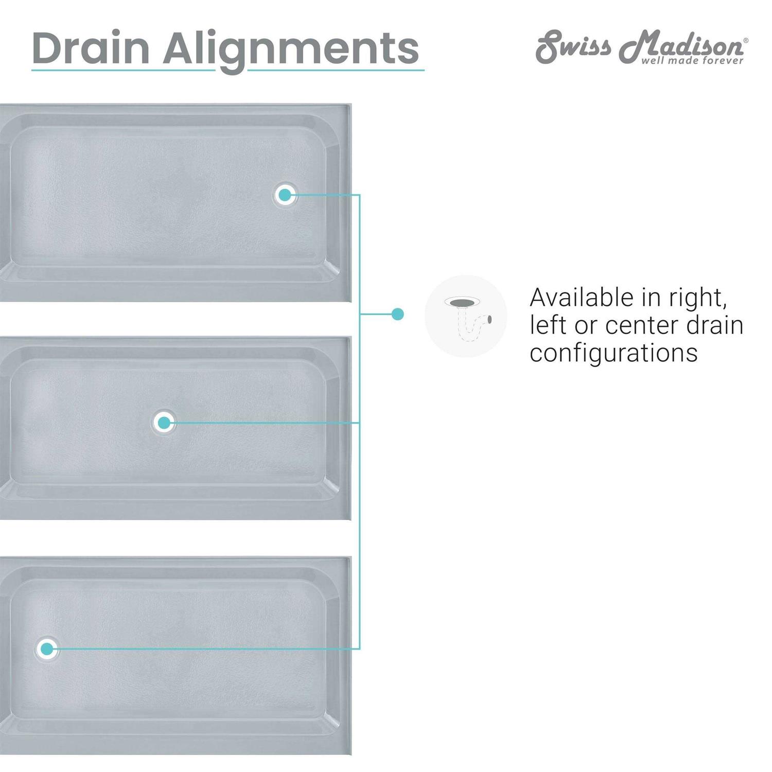 Swiss Madison Voltaire 60 in. L x 32 in. W Alcove Shower Pan Base with Right-Hand Drain in Grey