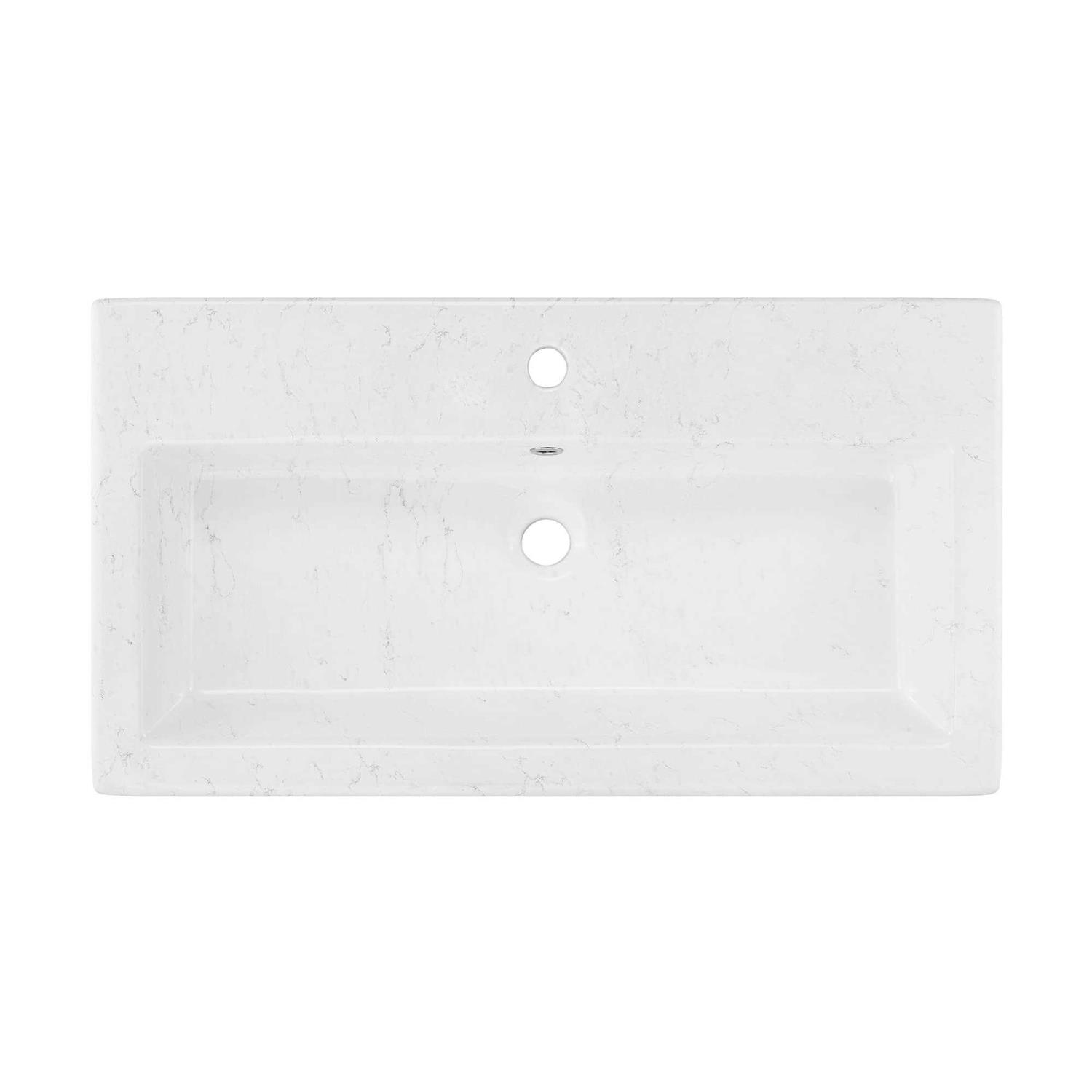 Swiss Madison Voltaire Wide Rectangle Vessel Sink in White Marble