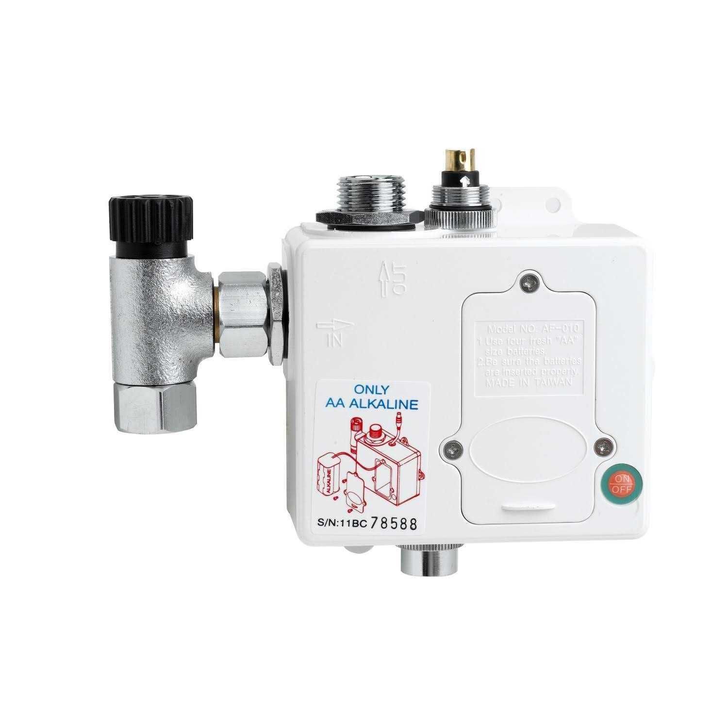 Replace a faulty control module with the Equip by T&S 5EF-0001 to keep your electronic faucet running properly! Electronic, hands-free faucets are a great way to improve hygiene while also decreasing your utility bills. If you notice that your faucet is running without being activated, or if it fails to activate at all, you might need a new control module. The Equip by T&S 5EF-0001 replacement control module was designed as a replacement for the one that came with your Equip by T&S electronic sensor faucet. Use it to replace a faulty module right away, so that your faucet remains operational! The below-deck control module box mounts easily to the wall beneath your faucet. A removable strainer and mixed water elbow fitting promote reliable performance, and thanks to it’s 1/2″ NPSM female swivel coupling inlet and 1/2″ NPSM male outlet, this module quickly and easily attaches to your existing plumbing lines. Connect the faucet sensor cable to the control module using the water-resistant cable connection. This module runs on 4 AA batteries. When the sensor flashes red, this indicates the batteries are low and ready to be changed.