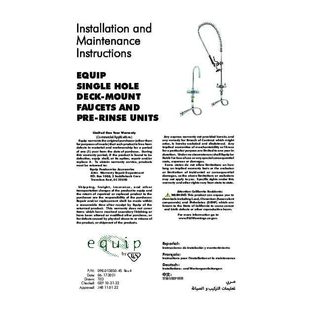 The T&S Brass 5PR-2S12 Pre-rinse Unit is a convenient and useful water fixture perfect for commercial kitchens, restaurants and even residential applications. It is a single-hole, deck-mount mixing faucet with a 2-1/4 deck flange. Included in the package is an add-on faucet with a polished chrome-plated brass body. The faucet features a 12-1/8 swing nozzle with a laminar flow device, which does not introduce air into the water stream. This reduces the risk of harmful bacteria accumulating in the water which makes this faucet perfect for institutions that mandate sterility. This T&S Brass Pre-rinse Unit comes with quarter-turn Ceramic cartridges that guarantee outstanding durability and temperature tolerance. It is designed with lever handles that utilize color-coded screws, making hot and cold water identification easier. It comes complete with 1/2 BSPP check valves and 18 flexible stainless steel supply hoses with removable 5/8 compression fittings that will accommodate 1/2 NPSM attachments when the compression nuts are removed. It includes a 6 wall bracket and an 18 rigid riser for a fast and hassle-free installation. It boasts superior flexibility with its 44 flexible stainless steel hose that provides plenty of versatility to position the spray valve exactly where you need it. It proudly features a 1.42 GPM spray valve that easily washes off debris. More details are available in the specification sheets. This is an EPAct2005-compliant product and is recognized for meeting the required environmental standards. T&S is among the first commercial plumbing manufacturers and has set the quality standard in the industry for almost 50 years.
