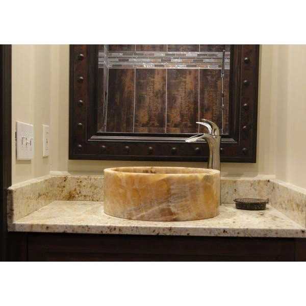 TashMart TM007 Cylindrical Natural Stone Vessel Sink Honey Onyx