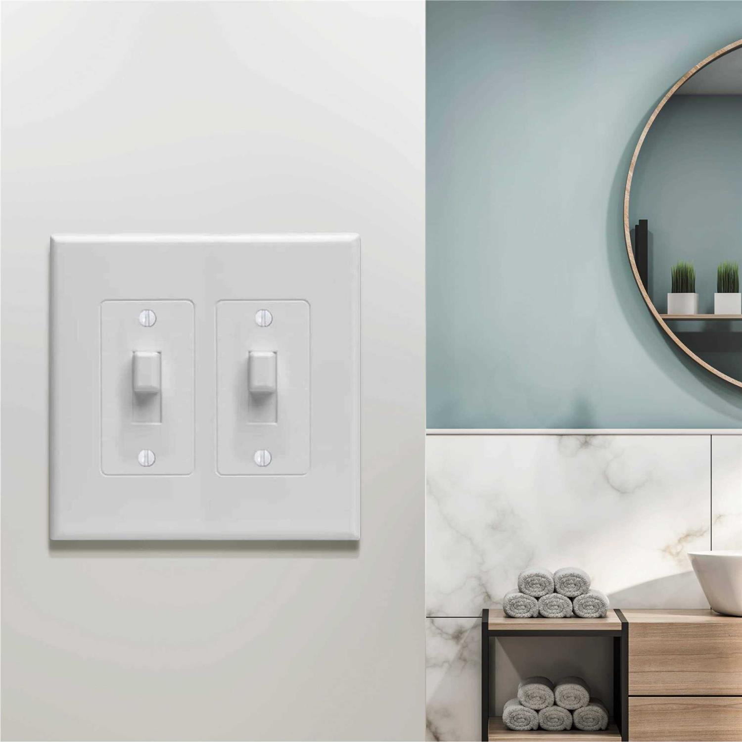 2-Gang Masque Revive duplex white toggle cover needs no re-wiring. Completely covers your outlet or switch. Included with this is the screw(s) in the matching finish for your convenience. Completely covers old outdated outlets and switches No rewiring required Contemporary look – smooth finish PVC material is wear- and tear-resistant Will not crack or distort during installation Includes screw(s) in matching finish Made in the USA