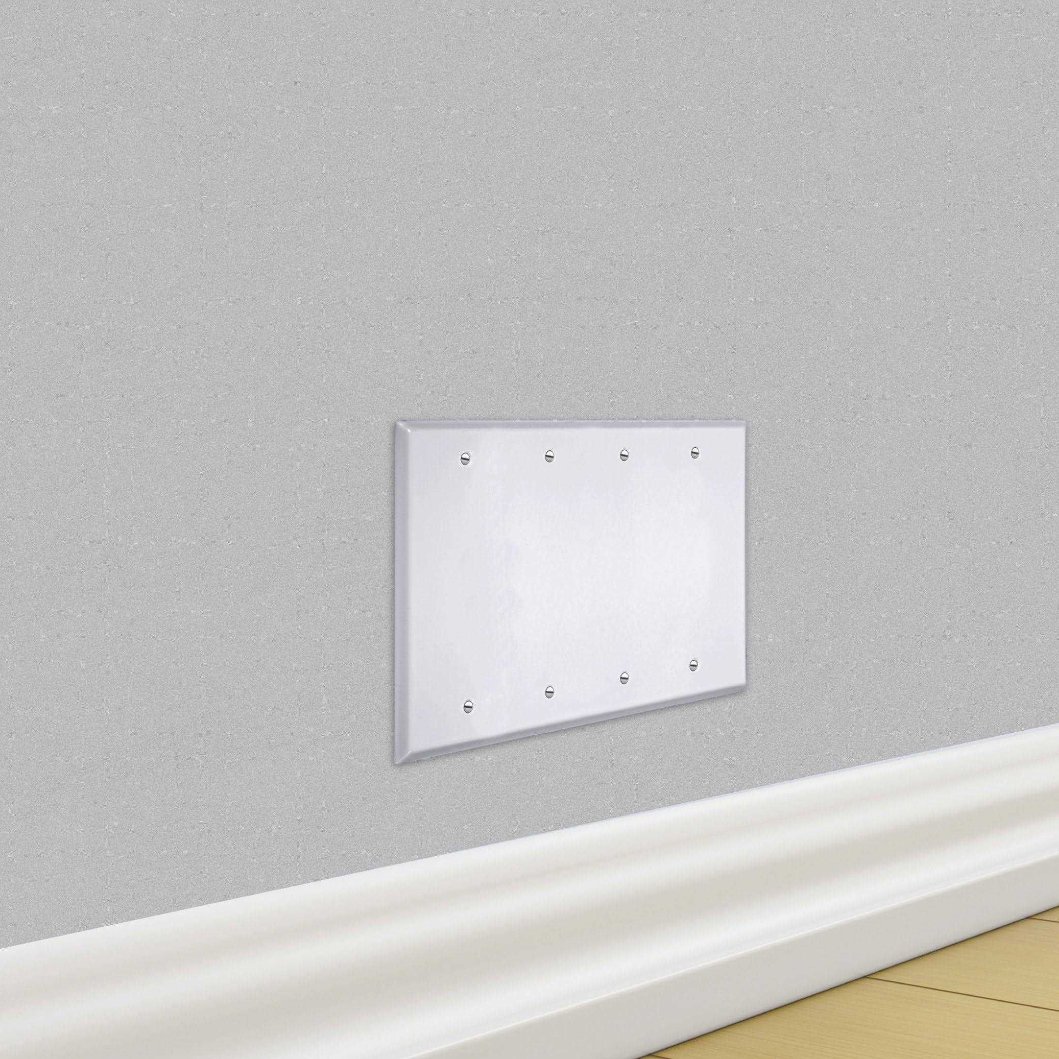 Easily primed and painted to match or complement walls Won’t bow, crack or distort during installation Premium North American powder coat Includes screw(s) in matching finish Designed for use in home, commercial and industrial settings for enhanced durability and appearance The product type is 4-Gang Metal Wallplate, Standard, 4-Blank, White Smooth. It is manufactured in China. It is manufactured by TAYMAC.
