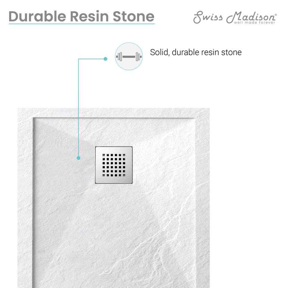 - Get your own steam shower by installing this Swiss Madison superior Terre B Series L x W Alcove Shower Pan Base with Reversible Drain in White.
