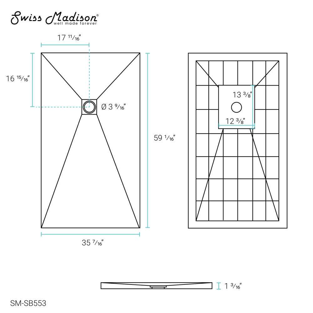 Terre P Series 60″ x 36″ Reversible Drain Shower Base