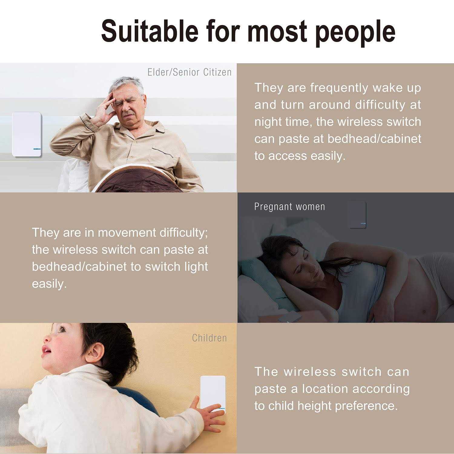 Thinkbee Wireless Lights Switch Kit No Wiring Mini Remote Switch No Wifi Needed