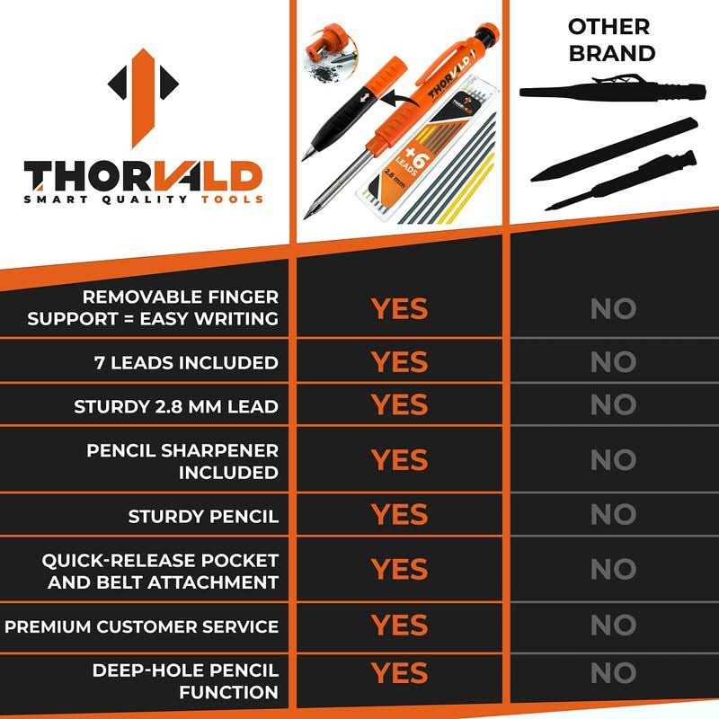 THORVALD Carpenter Pencils Set for Carpenter Incl. 7 Leads + Sharpener + Finger Grip