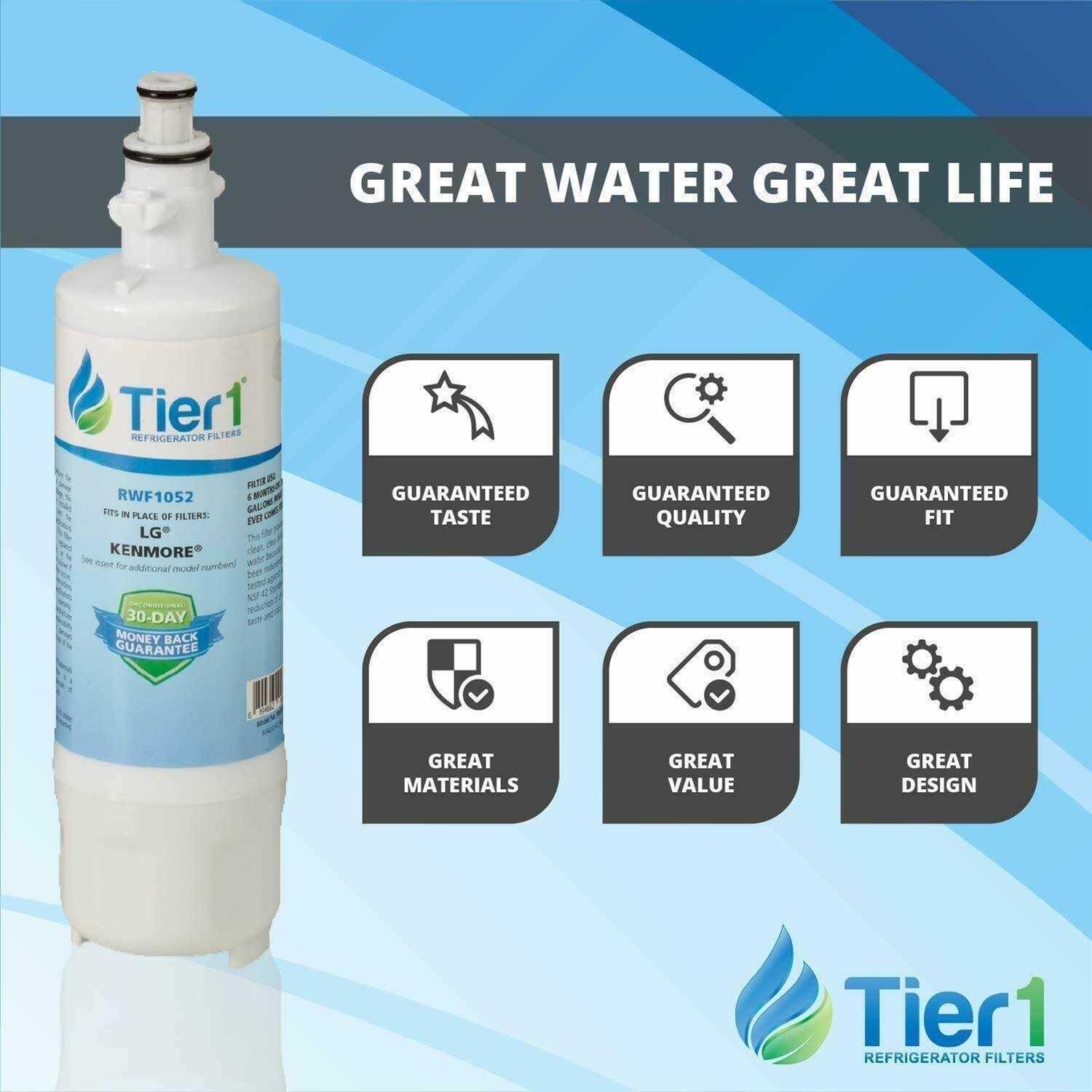 Is it time to replace your LG Lt700P water filter Look no further than the comparable Rwf1052, refrigerator water filter by Tier1. This filter will last up to six months depending on usage, and take out contaminants such as chlorine, rust, sediment and turbidity. Included with the Tier1 Rwf1062 is the LG brand Lt120F replacement air filter. The Lt120F air filter preserves your food’s taste and keeps things fresh for up to six months, in addition to neutralizing odor. Order this combo pack today!