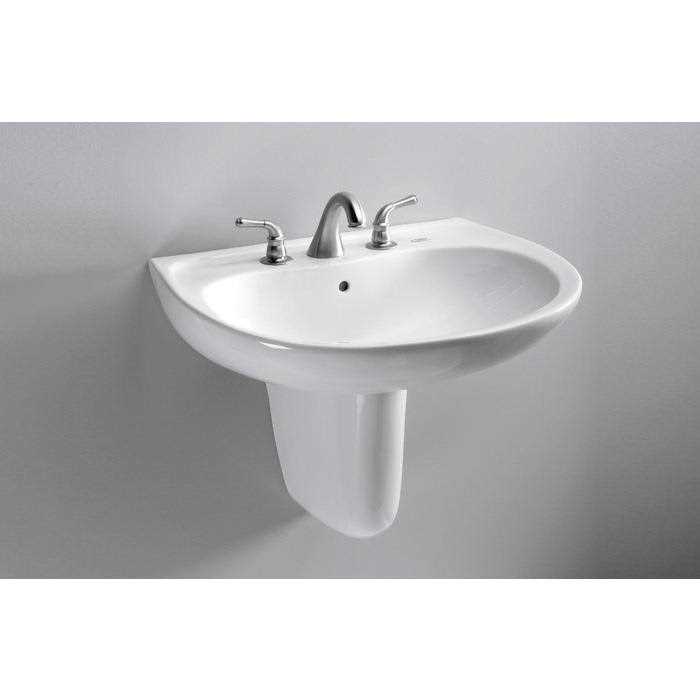 Link to TOTO Color Chart This Supreme pedestal lavatory from Toto features a single-hole faucet installation, built for faucets with a handle attached. This sink has been crafted from durable vitreous china and finished in pristine Cotton white, creating the perfect complement for most decor styles. A layer of SanaGloss glaze repels the mold and grime that tend to build up on sink surfaces, keeping your lavatory clean between cleanings and reducing the chemicals needed in your home. The measurements of the bowl are 20 1/2″ by 13 1/4″. Crafted with sleek, slim lines and designed to save space, this wall mounted sink comes with all the necessary hardware for installation.