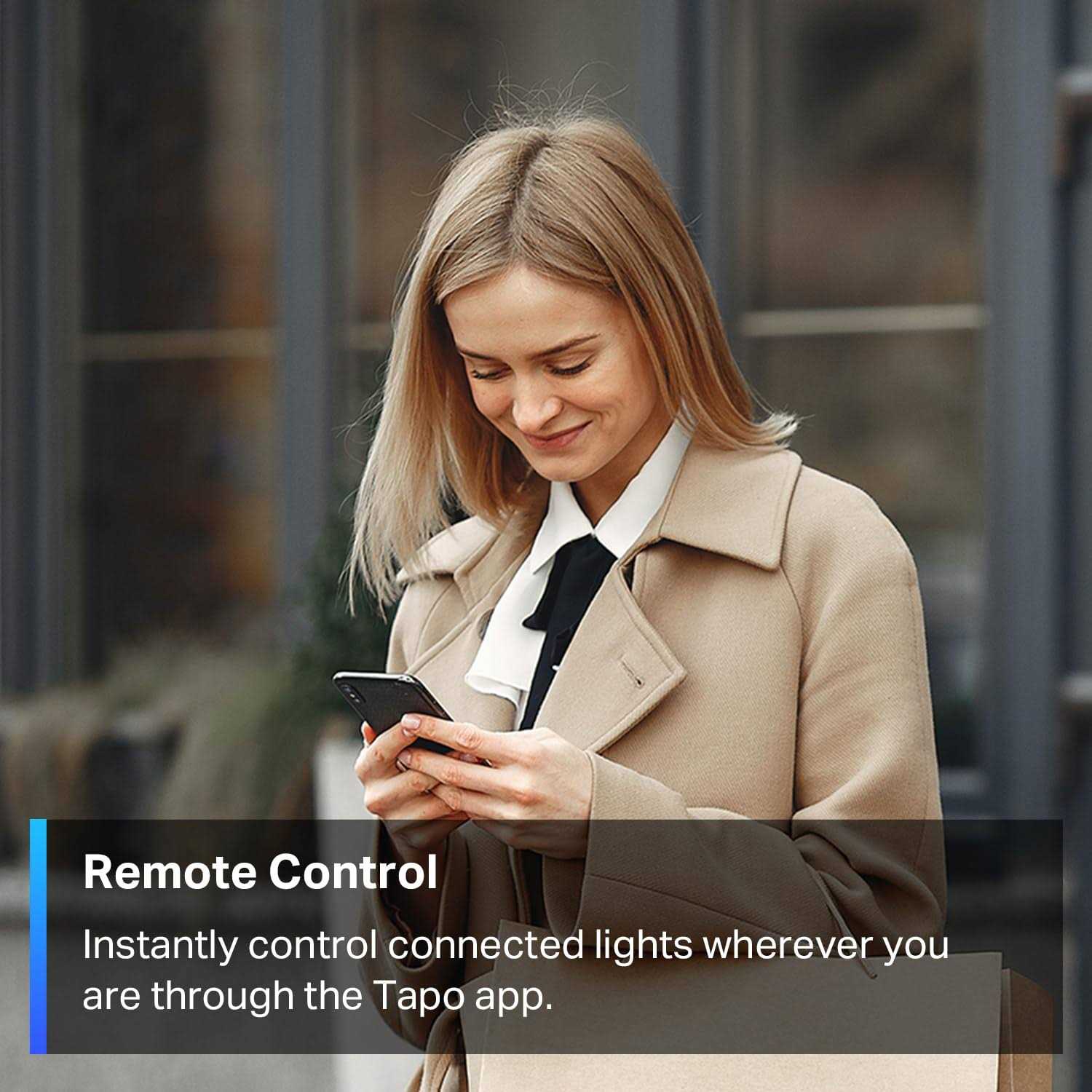 • Remote Control – Instantly turn connected devices on/off from wherever you are through the Tapo app