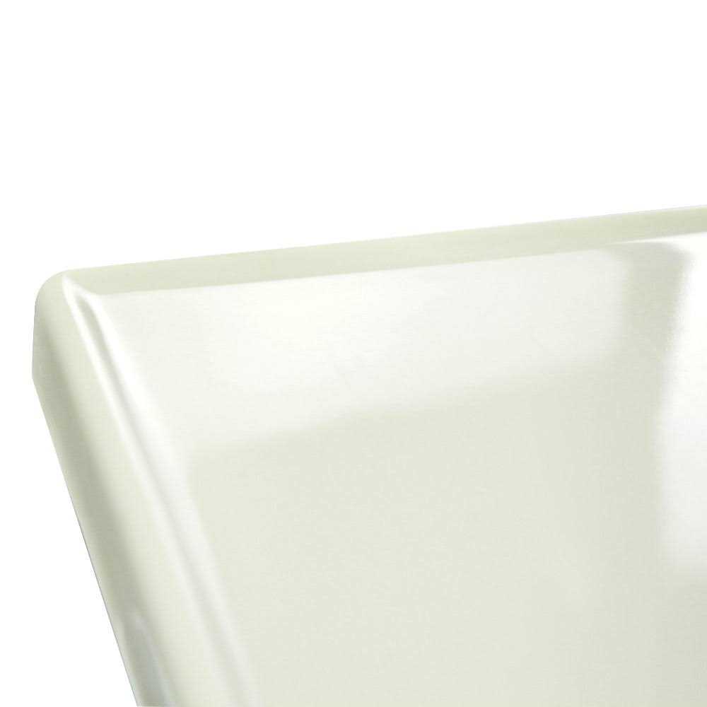 White on Bone recessed oval bowl with overflow, 4-in faucet hole drillings, and integral backsplash. Built with a 3/4-in deck thickness.